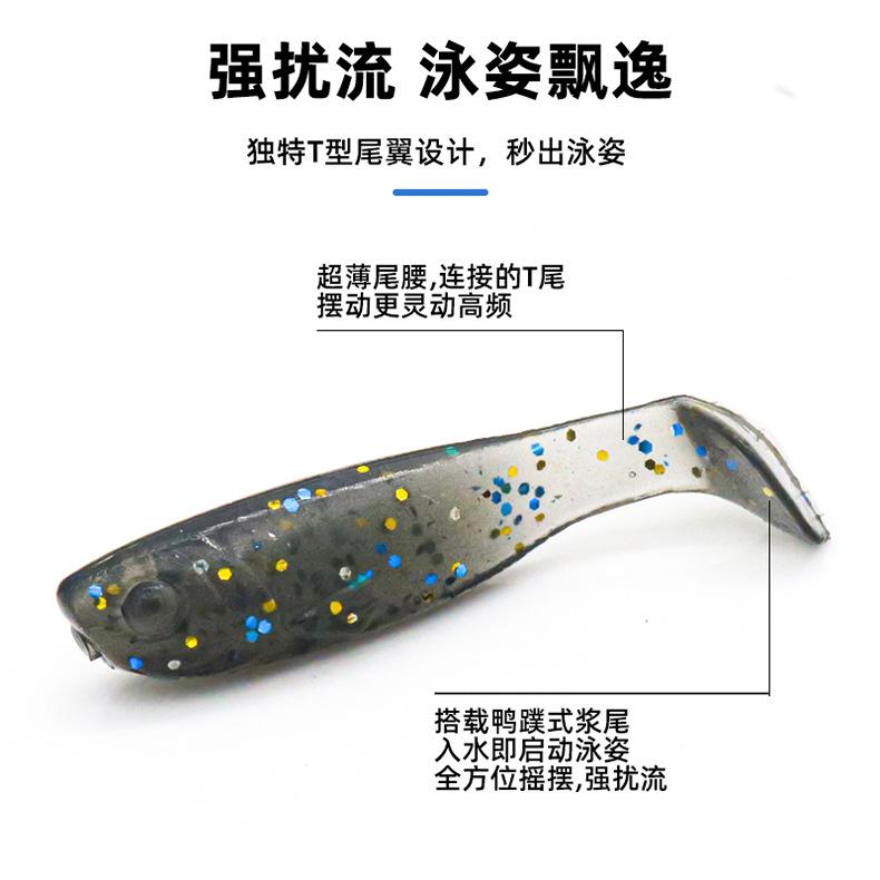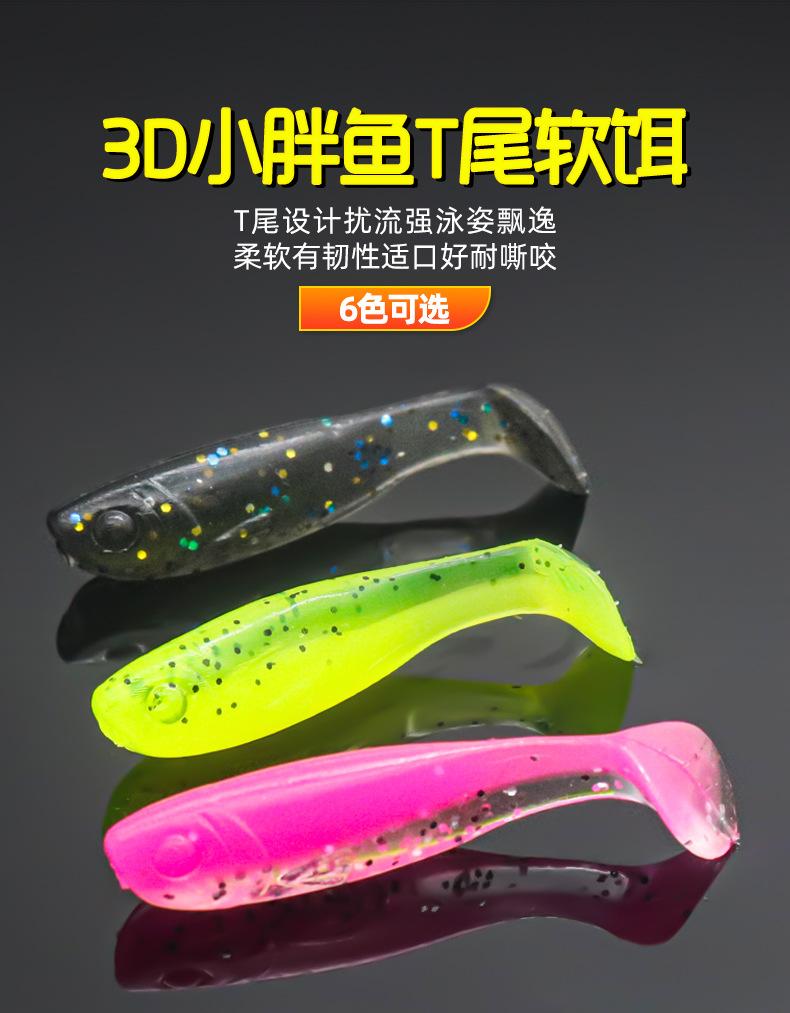 Peixe gordo pequeno T-cauda micro-objeto Luya isca macia bicolor PVC macio inseto 4cm5cm preto pit bass mandarim peixe isca falsa atacado