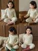 Conjunto de Pijama Infantil Qiu Duo Meng 2026 Primavera e Outono Novo Desenho Animado Roupa de Casa Conjunto de Duas Peças Infantil Fofo Tendência