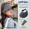 Chapéu de sol sem costura de uma peça para mulheres, chapéu de sol anti-uv, aba grande para esportes de verão, parte superior vazia, chapéu de sol dobrável