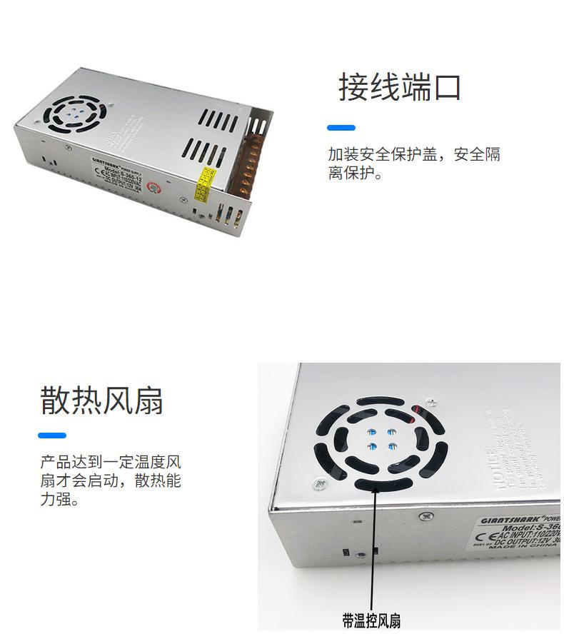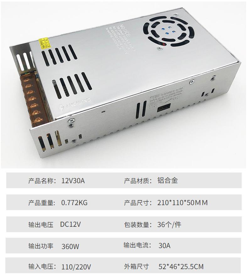 Monitoreo Fuente de Alimentación LED Tira de Luz Fuente de Alimentación Monitoreo Fuente de Alimentación 12v30a Fuente de Alimentación Conmutada 220V a 12V Fuente de Alimentación 30a Completa con Control de Temperatura Ventilador de Refrigeración 360W