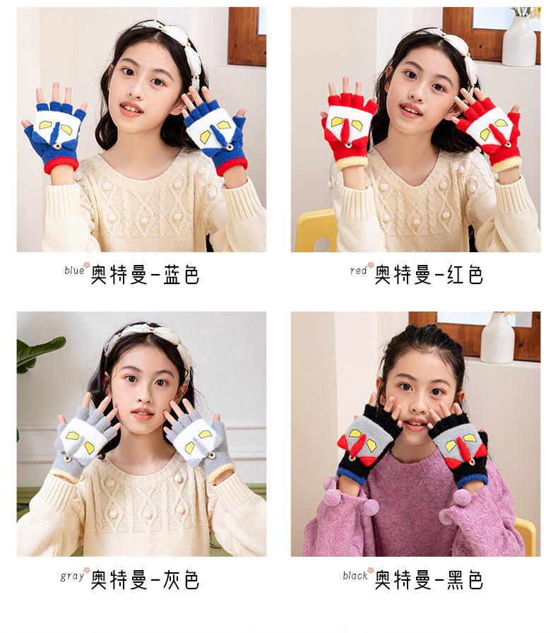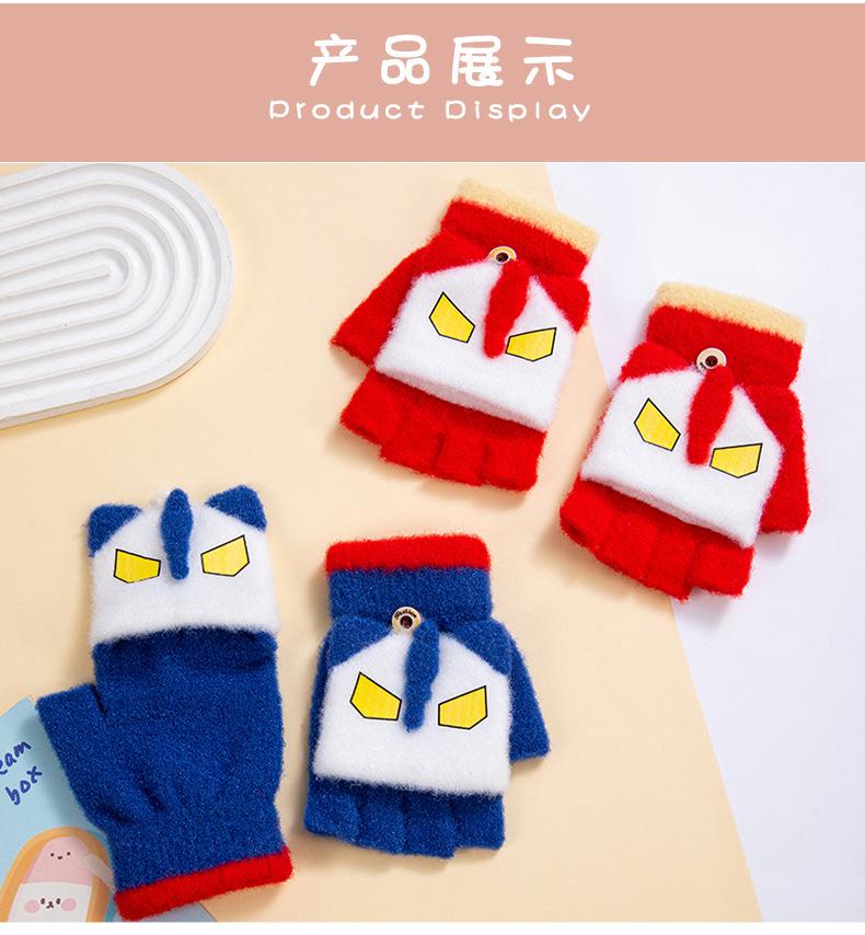 Children's half finger flip gloves ao bright red, Children's half finger flap gloves o black, Children's half ...