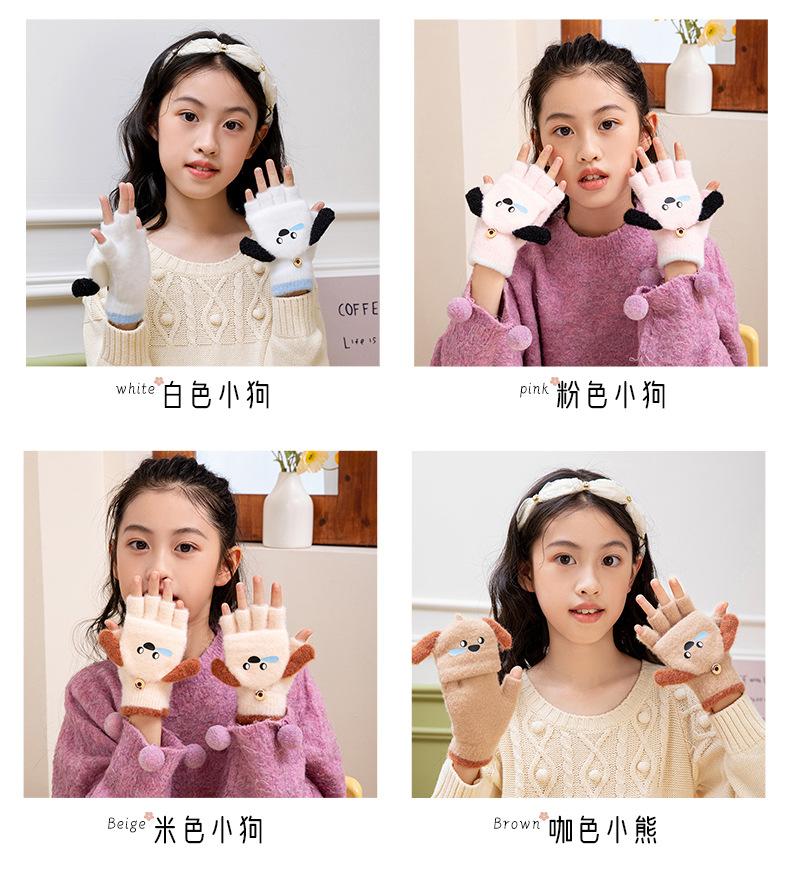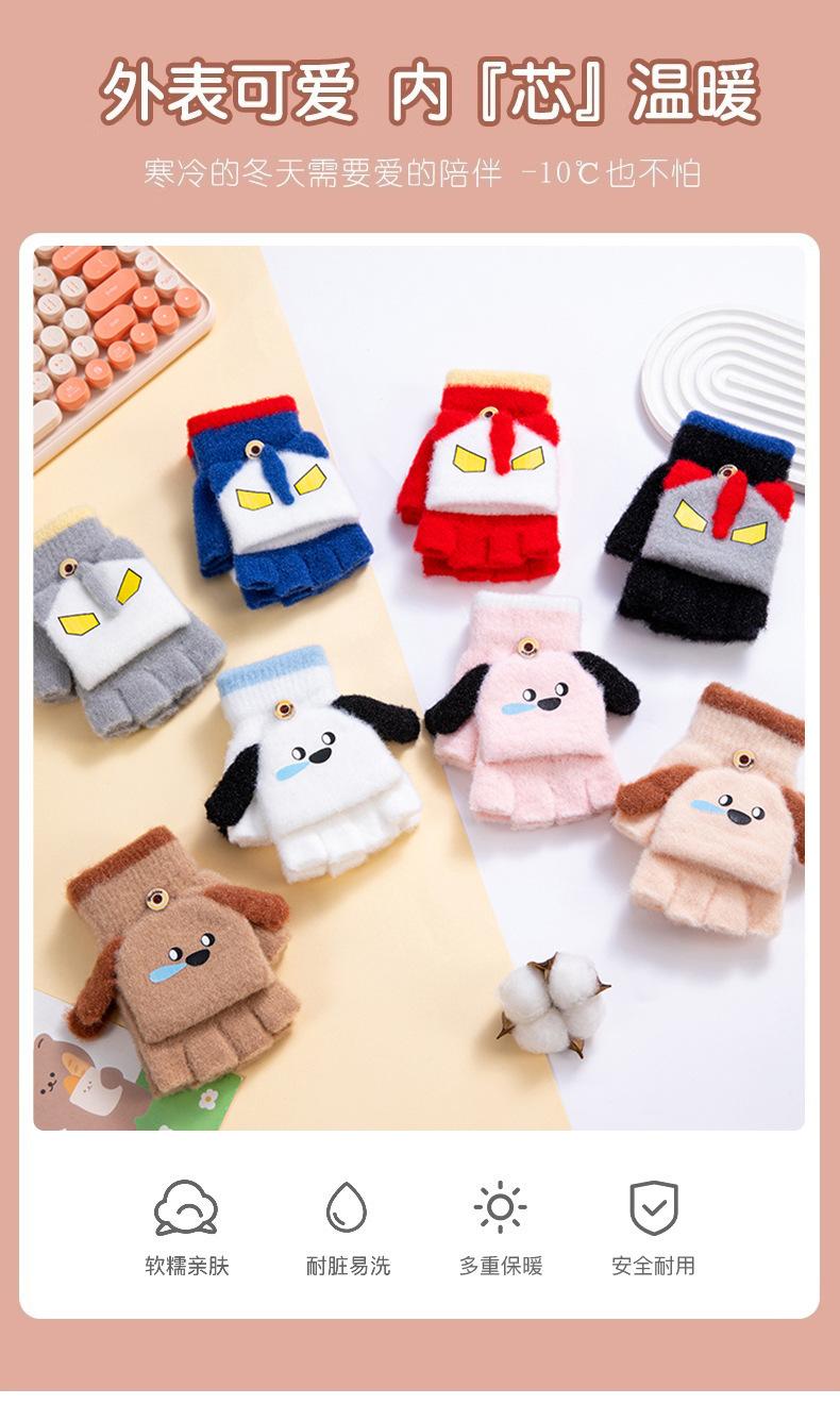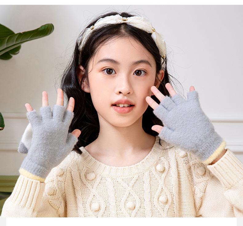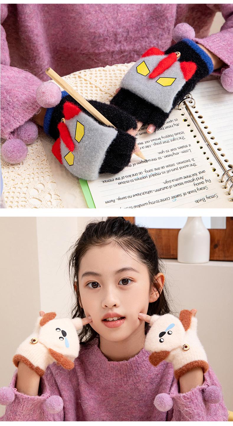 Luvas Quentes de Outono e Inverno para Crianças, Estudantes para Escrever, Cinco Dedos e Meio Dedo com Aba Dobrável, à Prova de Frio, Pelúcia Espessa para Homens e Mulheres