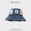Japonês Novo Adesivo Marca D'água Retro Denim Pescador Chapéu Crianças Primavera e Verão Nicho Estudantes All-match Protetor Solar Chapéu Bacia Chapéu