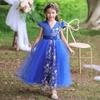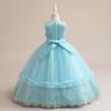Vestido infantil europeu e americano da amazônia para crianças de médio e grande porte, vestido de princesa com decote em V e bolo de malha para meninas, fantasia de apresentação de piano