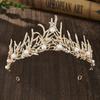 Tiara de coroa de noiva retrô europeia e americana liga simples pérola incrustada barroca chama cristal vestido faixa de cabeça atacado