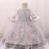 Vestido de princesa infantil para meninas, bebê de um ano, vestido de flores tridimensionais, fantasia de festa de aniversário para meninas