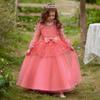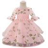 Amazon Europeu e Americano Vestido de Princesa Frisado para Crianças Vestido de Show para Meninas Manga Trompete Folhas Pequenas Bordadas Roupas de Princesa