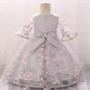 Novo estilo palácio estilo menina vestido infantil arco manga bufante vestido princesa europeu e americano bebê um ano de idade desempenho traje