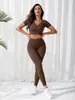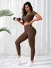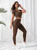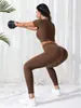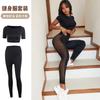 Conjunto de Ioga Esportivo de Tricô Estilo Europeu e Americano para Mulheres, Calças Compridas de Manga Curta de Secagem Rápida, Fitness Corrida, Levanta o Quadril, Ajuste Slim, Respirável e Confortável