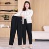 Calças Cropped Femininas Plus Size Estilo Coreano Cintura Alta Elásticas 2025 Outono Novo mm Gordo Aparência Emagrecedora Calças Boca de Sino Versátil Calças Médias