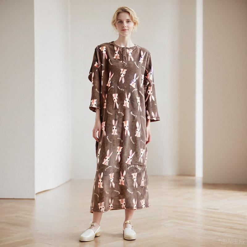 Camisola de flanela feminina de inverno, nova, com capuz, comprimento médio, roupão de banho grosso, pijama de uma peça, camisola quente