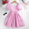 | |  | Vestido de meninas europeias e americanas, vestido de princesa fofo, crianças de médio e grande porte, apliques, manga bufante, vestido de cetim, traje de apresentação infantil | |