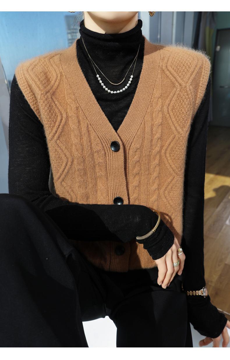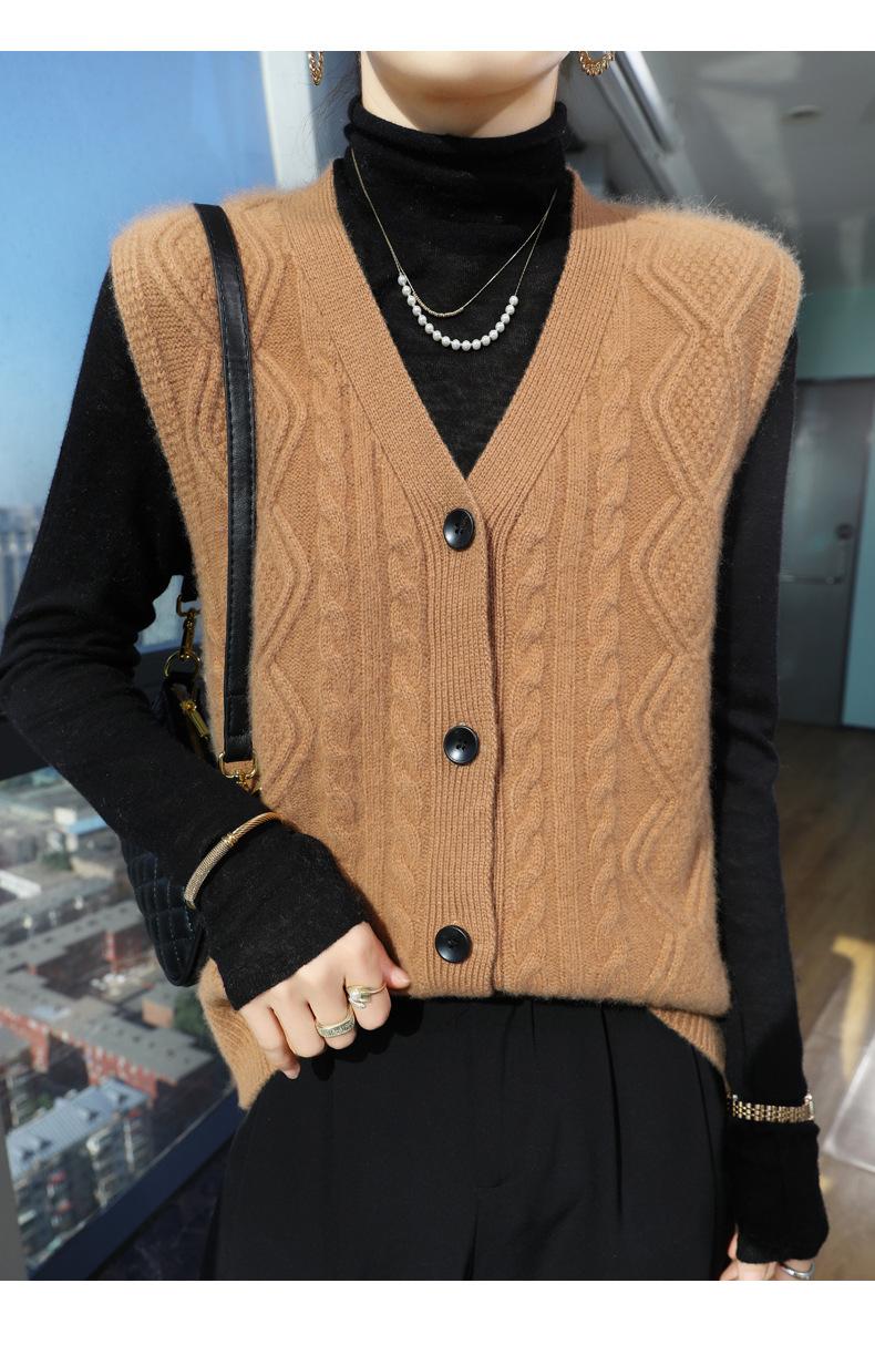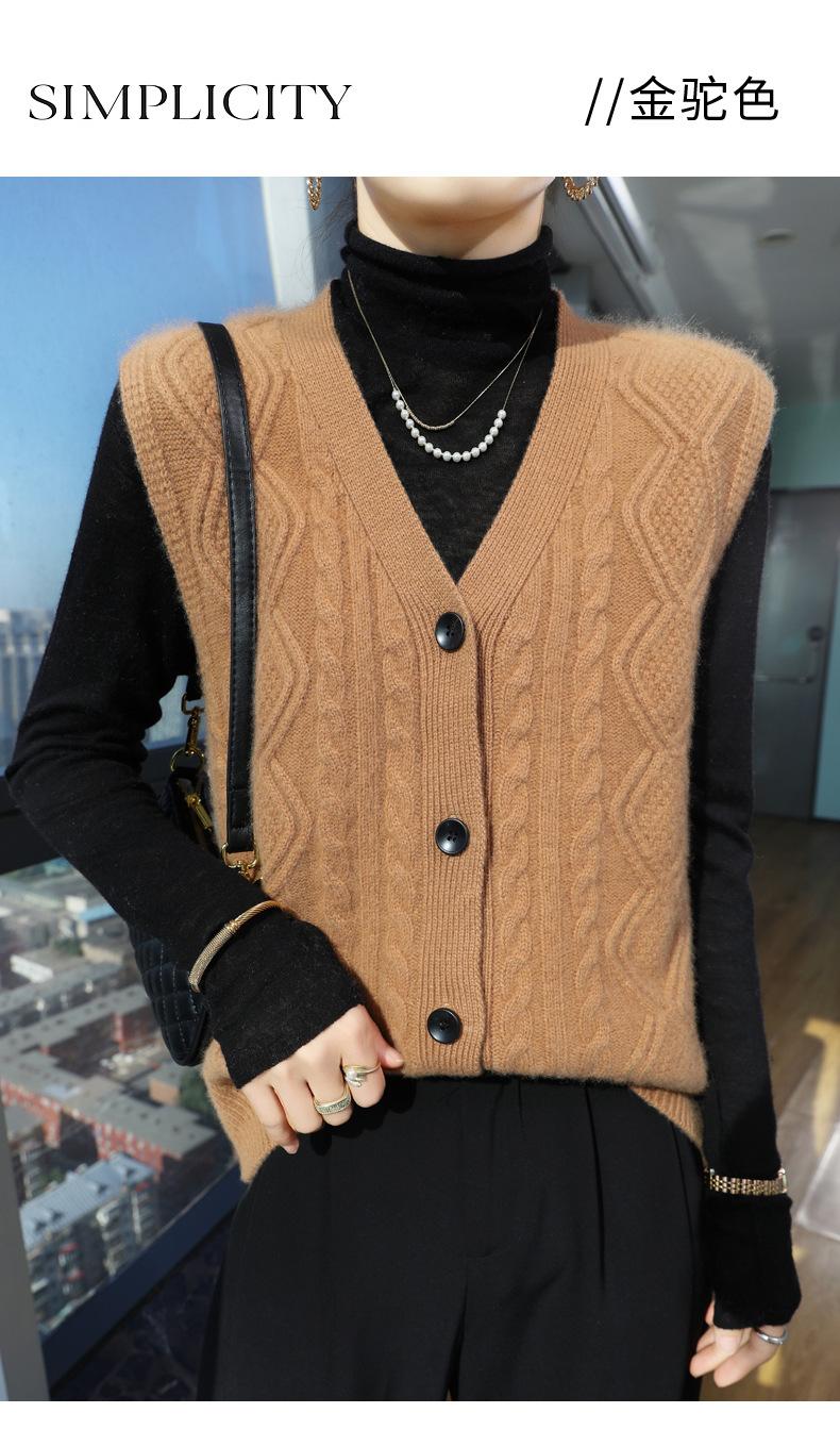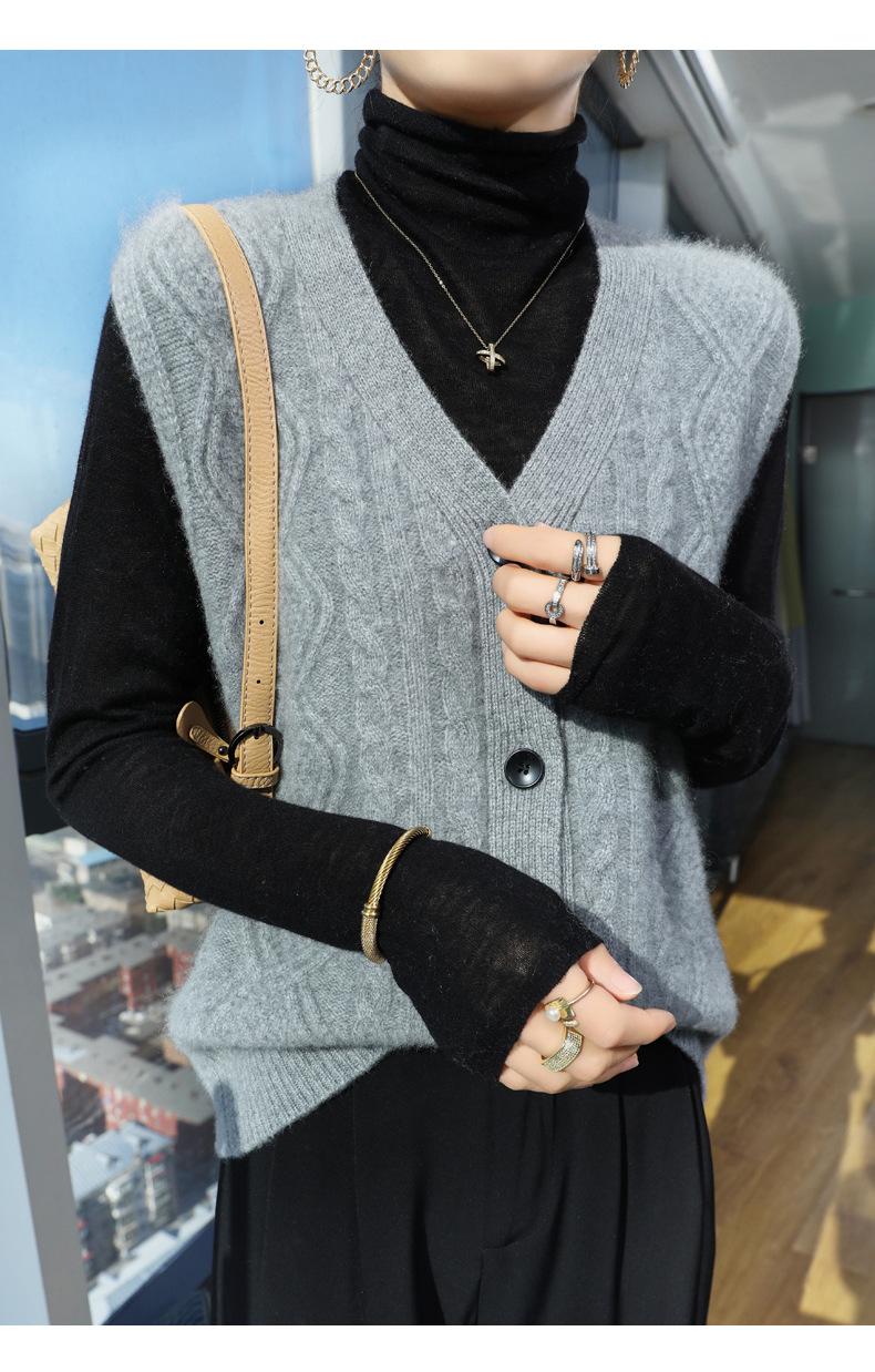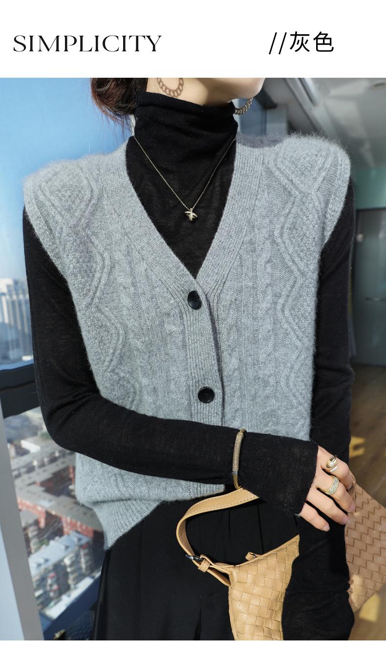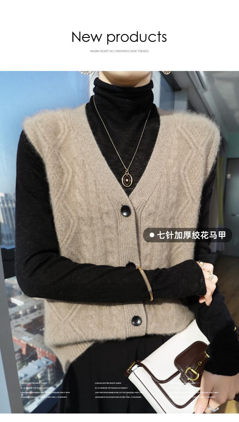 Colete de lã tricotada com sete agulhas, grosso, outono e inverno, cardigan feminino, sobreposição, suéter sem mangas, clipe de cavalo, cordão, moda floral