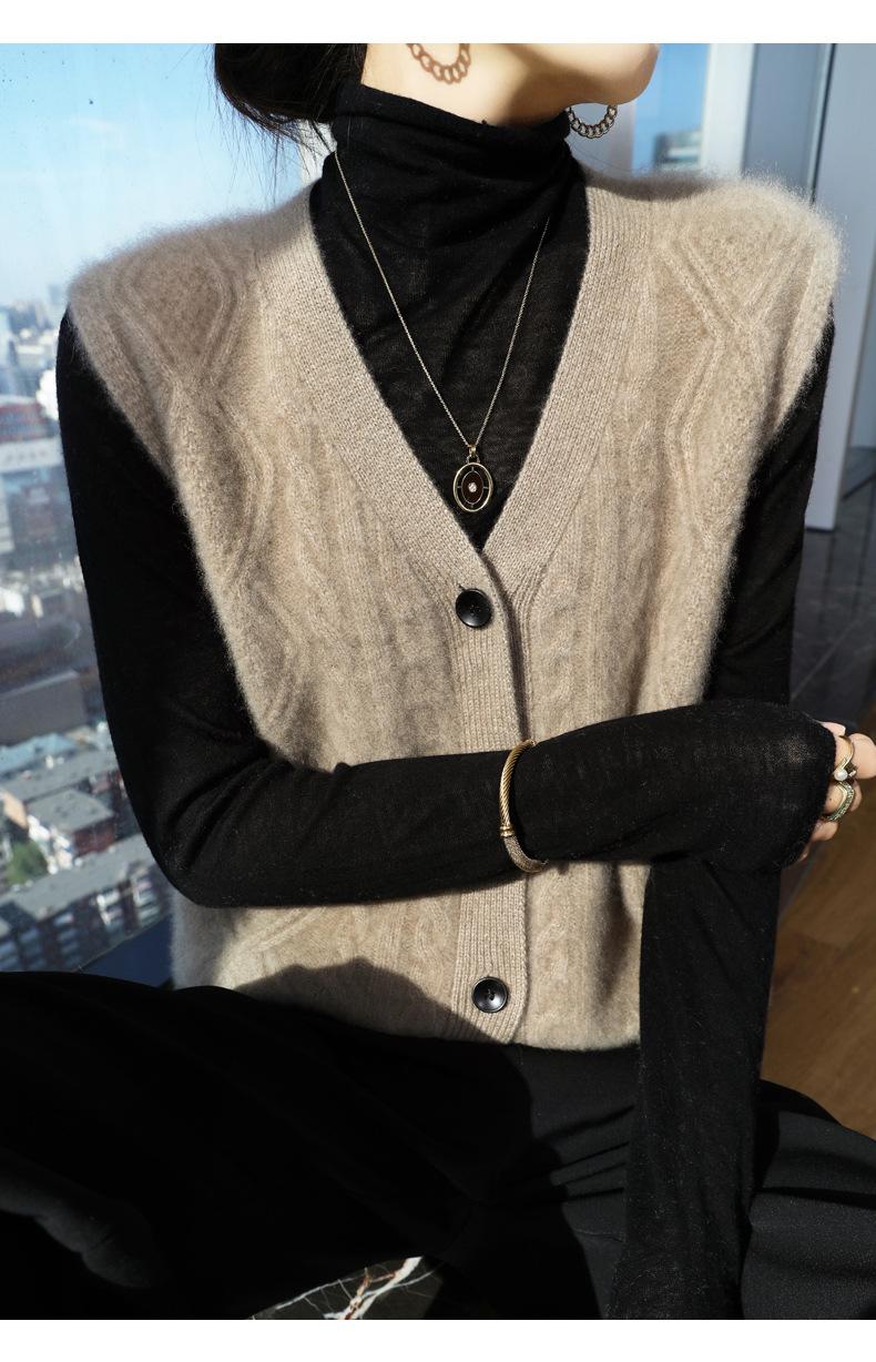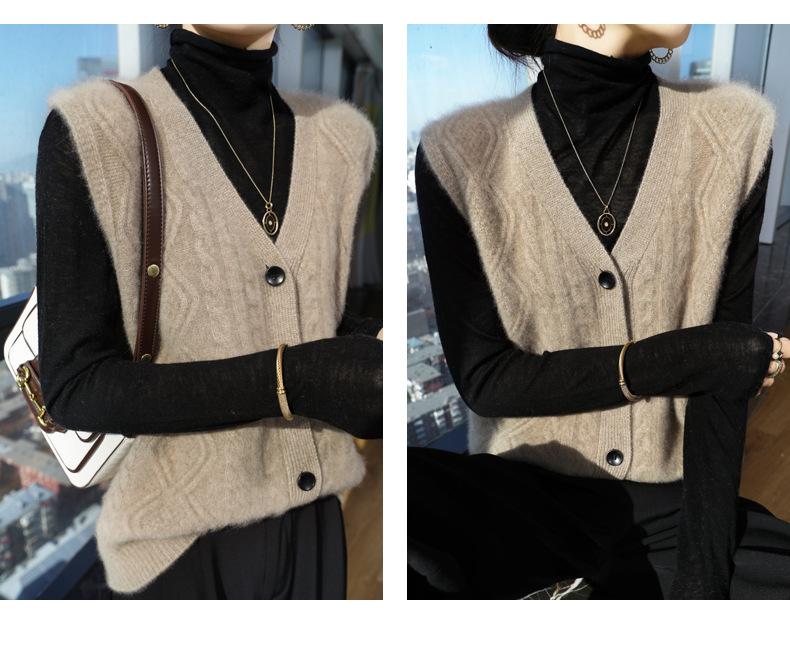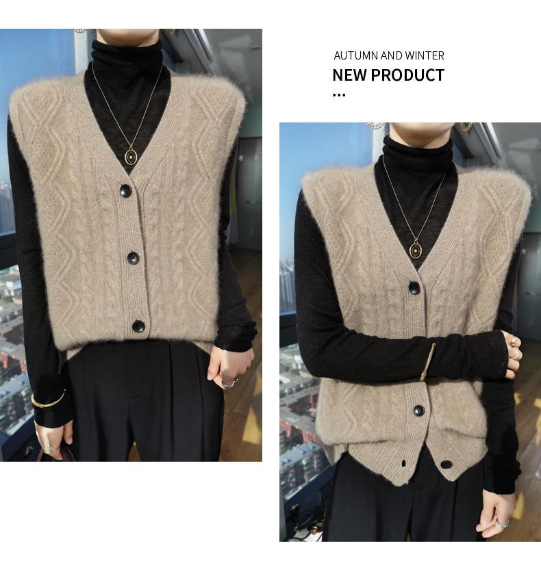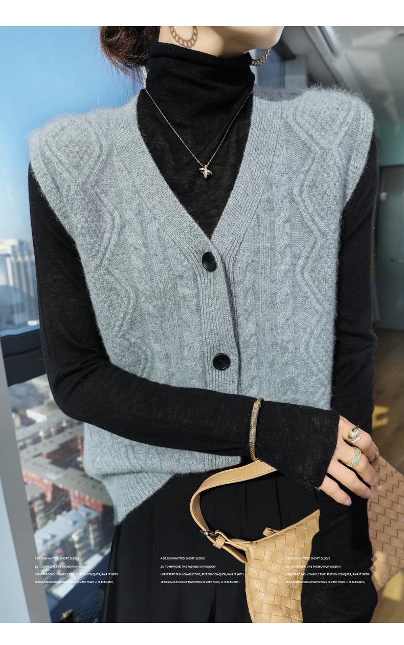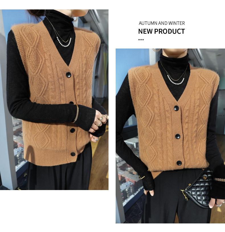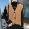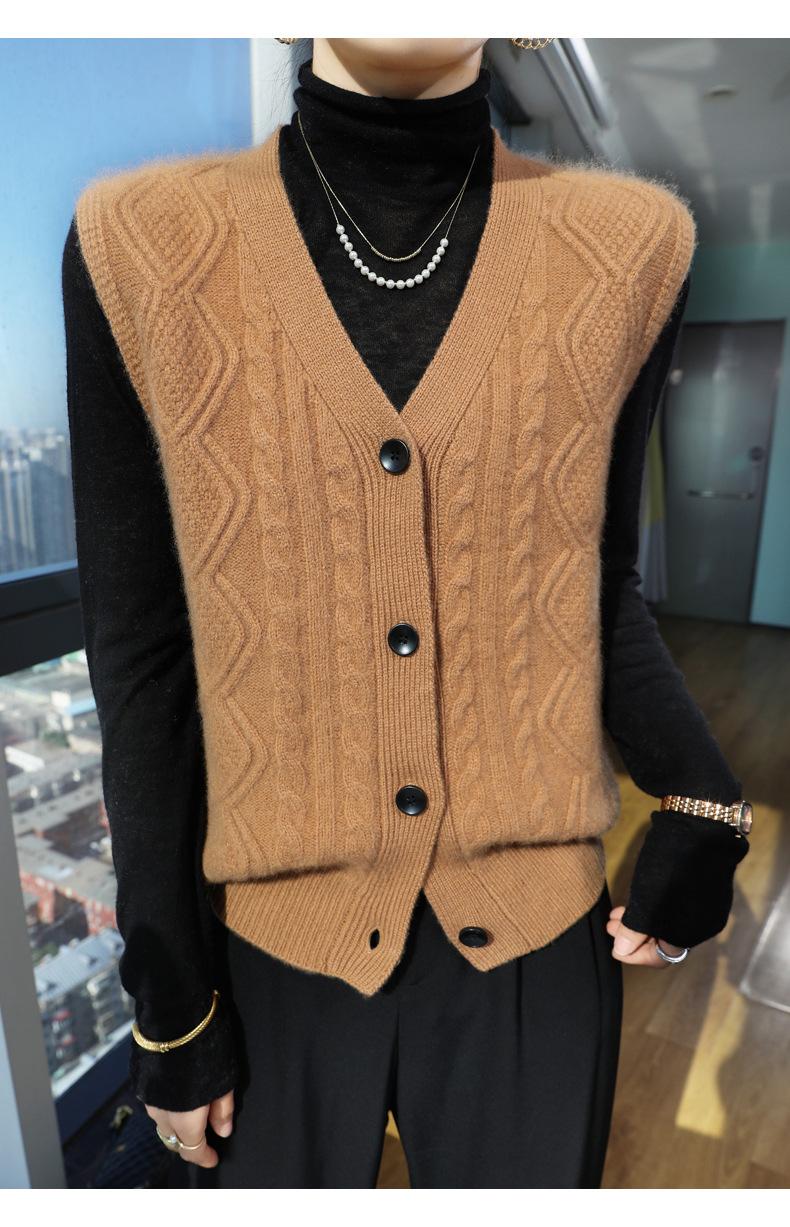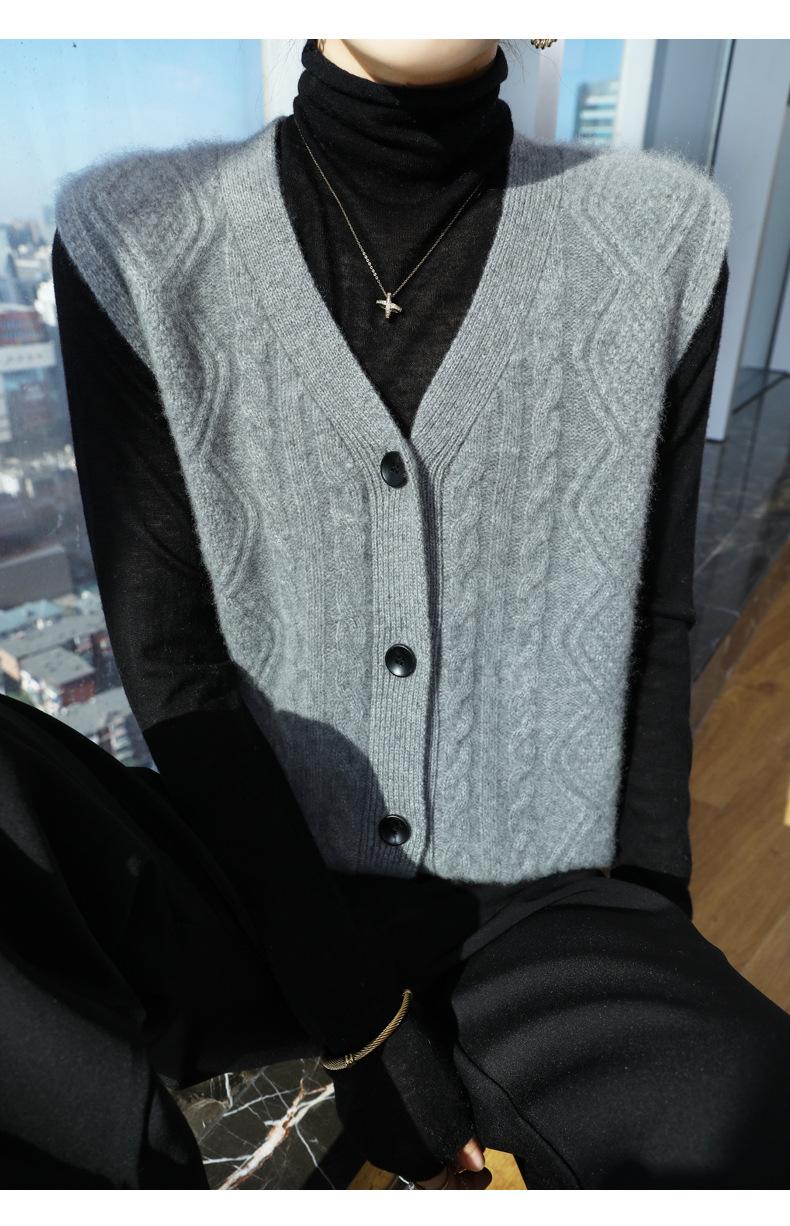 Colete de lã tricotada com sete agulhas, grosso, outono e inverno, cardigan feminino, sobreposição, suéter sem mangas, clipe de cavalo, cordão, moda floral