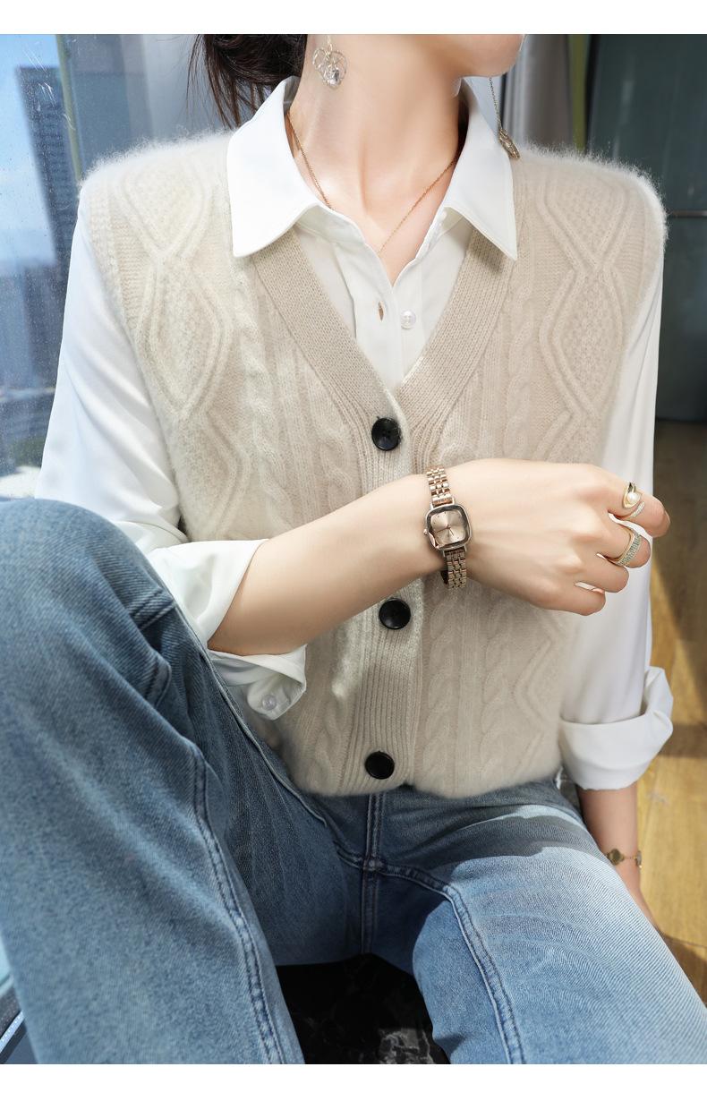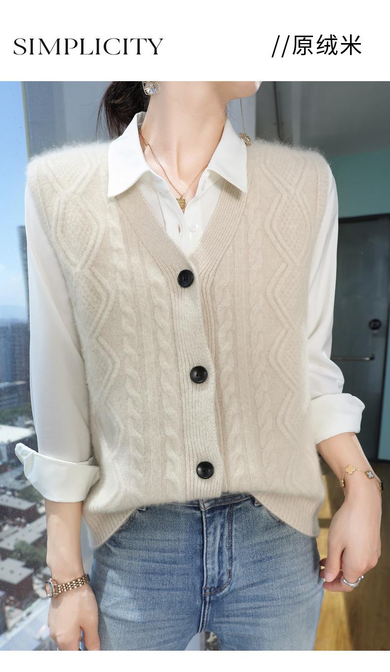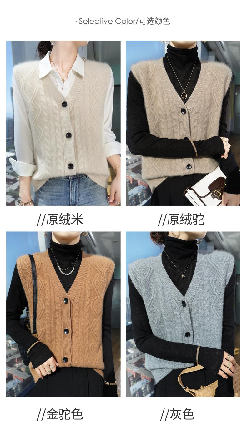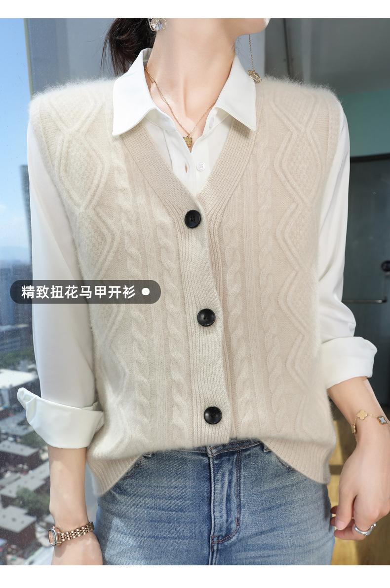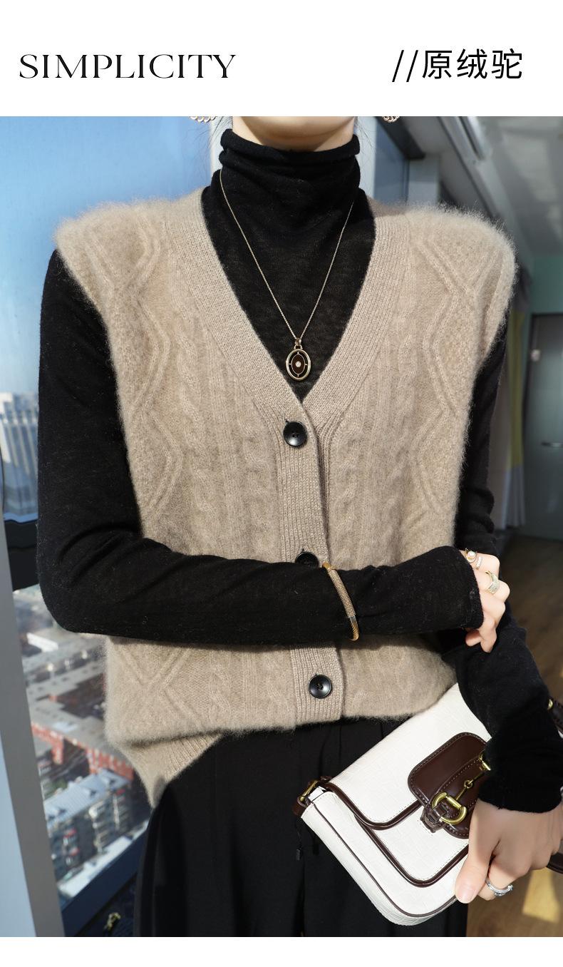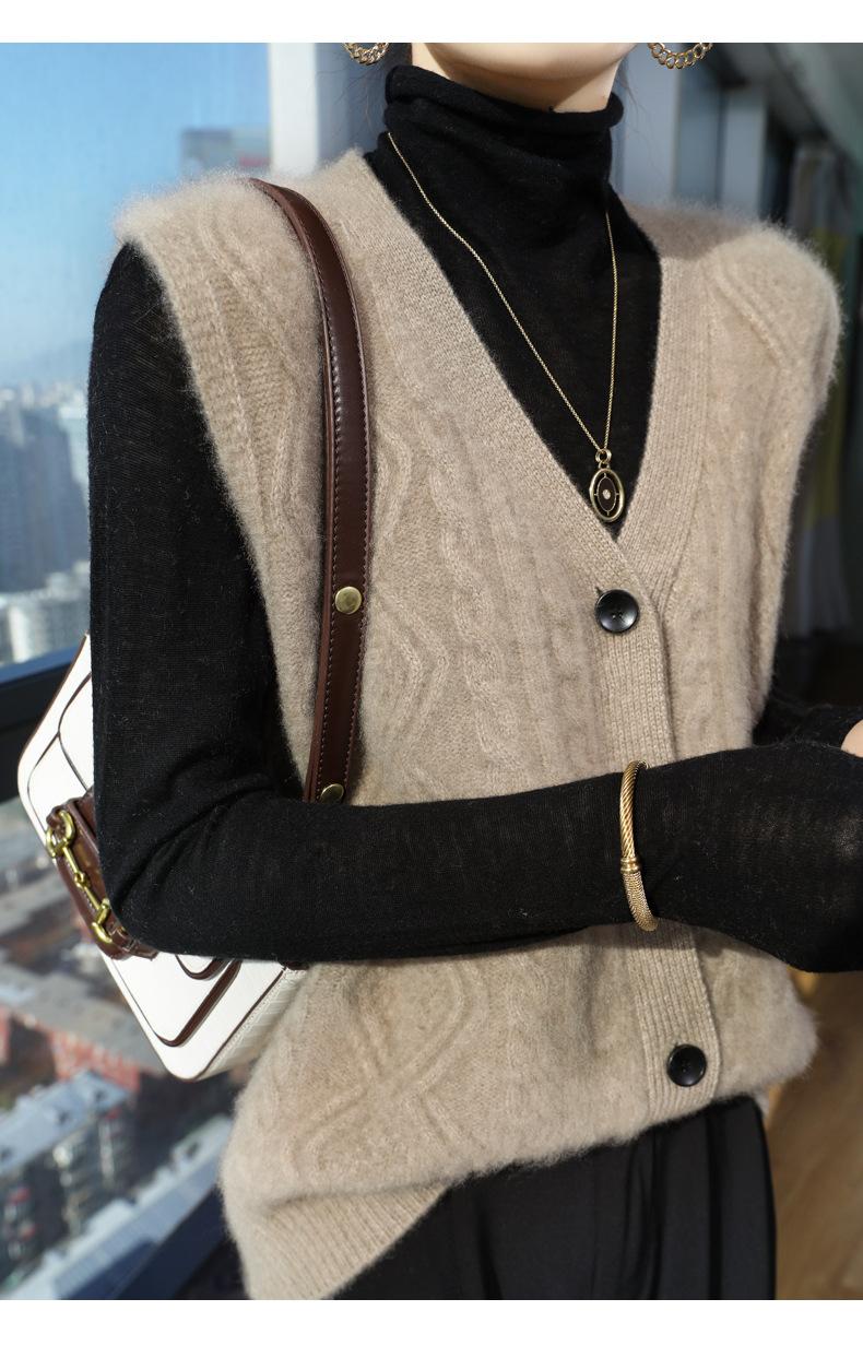 Colete de lã tricotada com sete agulhas, grosso, outono e inverno, cardigan feminino, sobreposição, suéter sem mangas, clipe de cavalo, cordão, moda floral