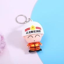 Novo bombeiro chaveiro pvc cola macia desenho animado bonito chaveiro bolsa estudante pingente pode ser atacado