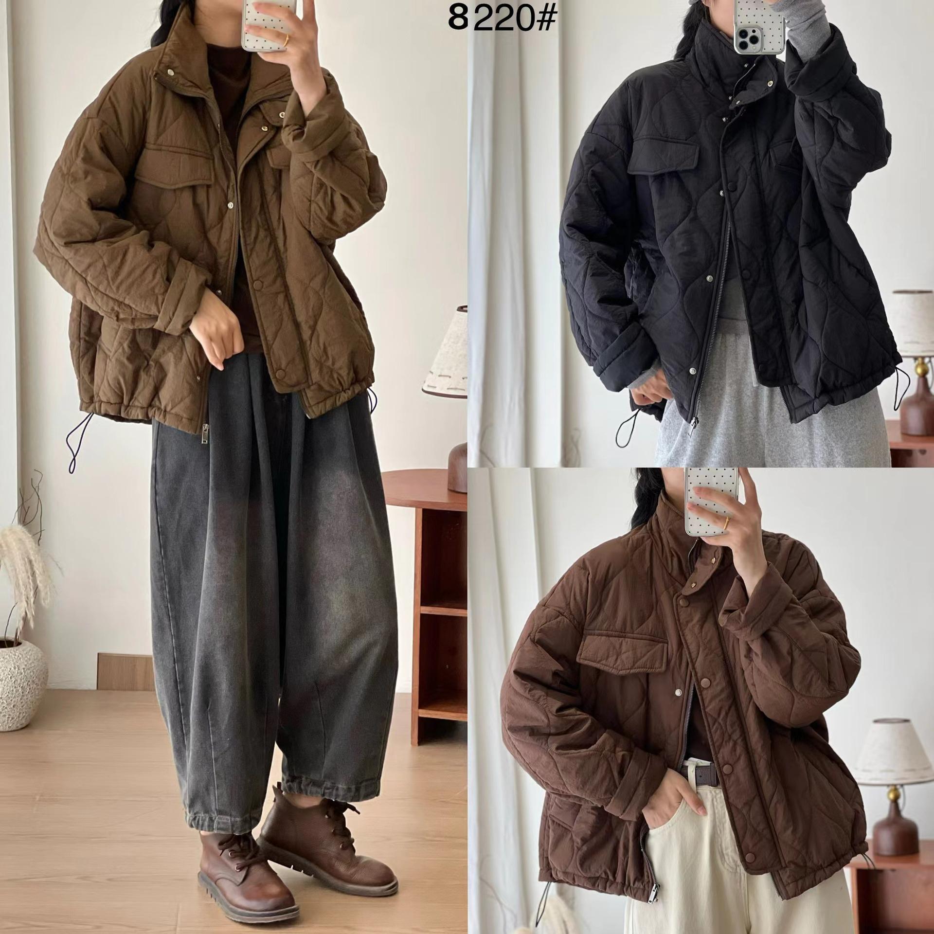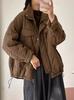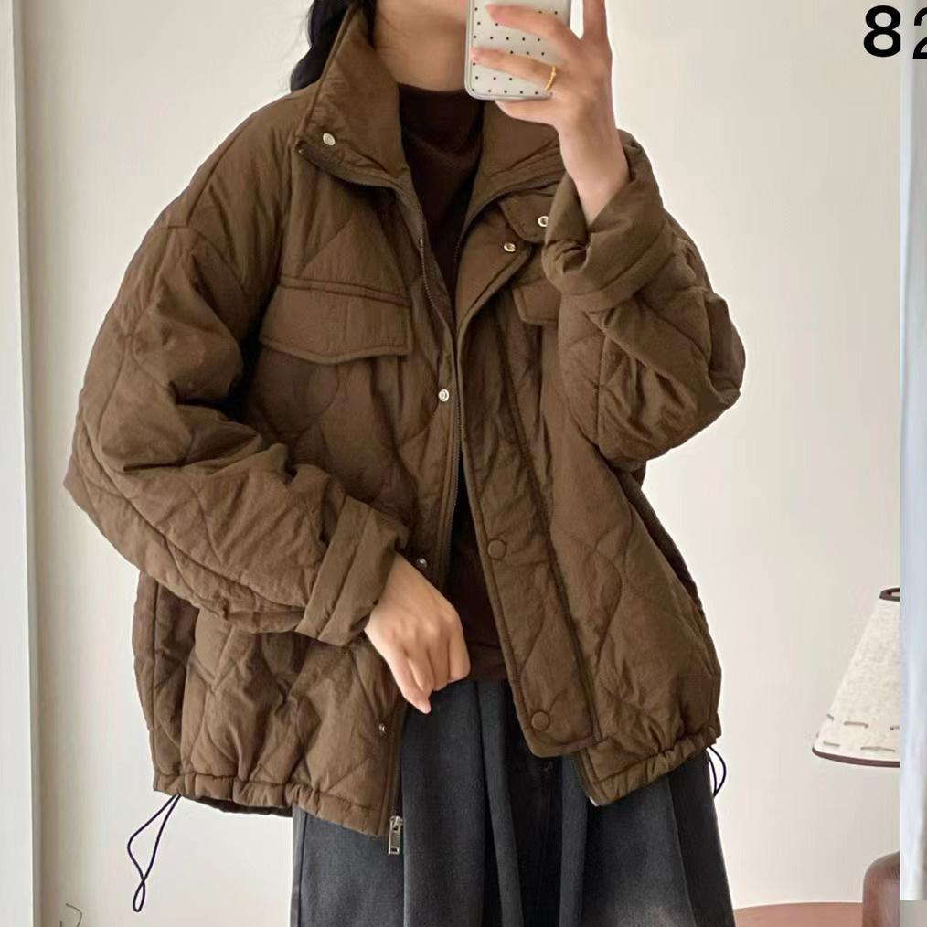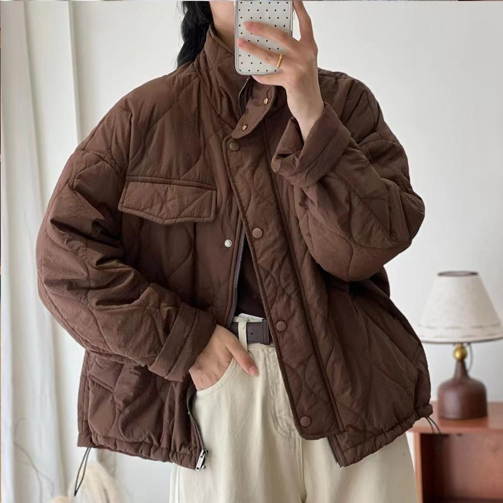 Mulheres acolchoado de algodão 2024 outono e inverno estilo americano bainha com cordão costura solta jaqueta quente casaco acolchoado de algodão 8220