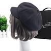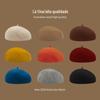 Boina feminina inverno cor sólida lã quente malha octogonal chapéu coreano retro lã luz placa pintor chapéu atacado