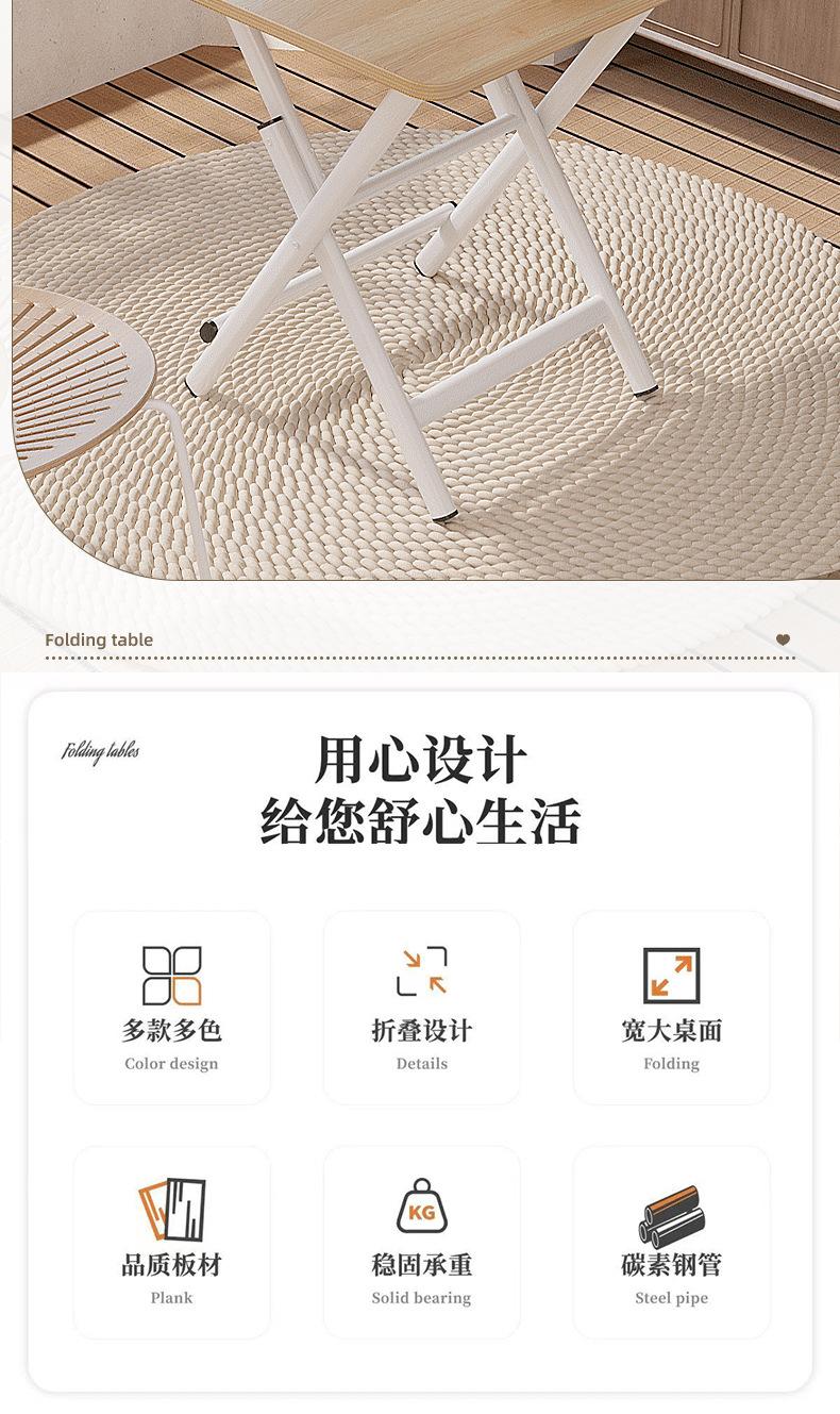Mesa dobrável doméstica Mesa pequena Mesa de jantar quadrada simples doméstica Aluguel de casa Mesa de jantar portátil ao ar livre