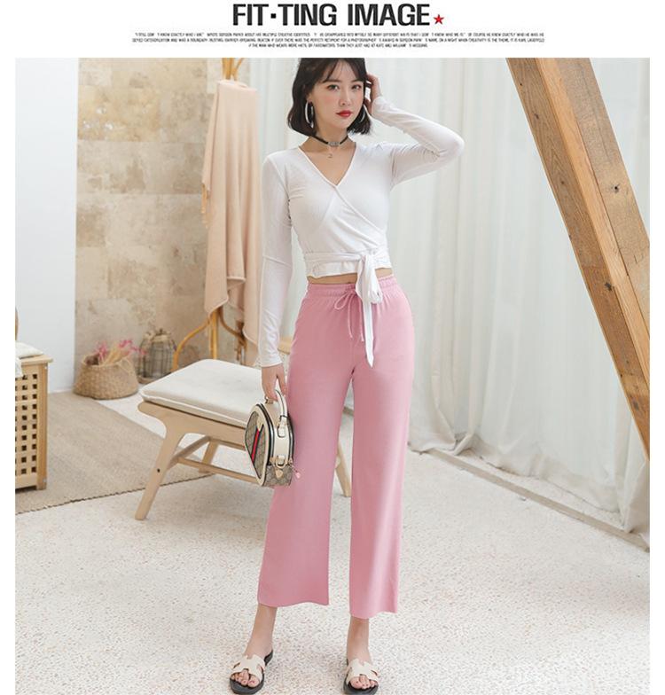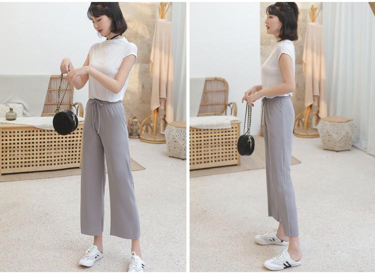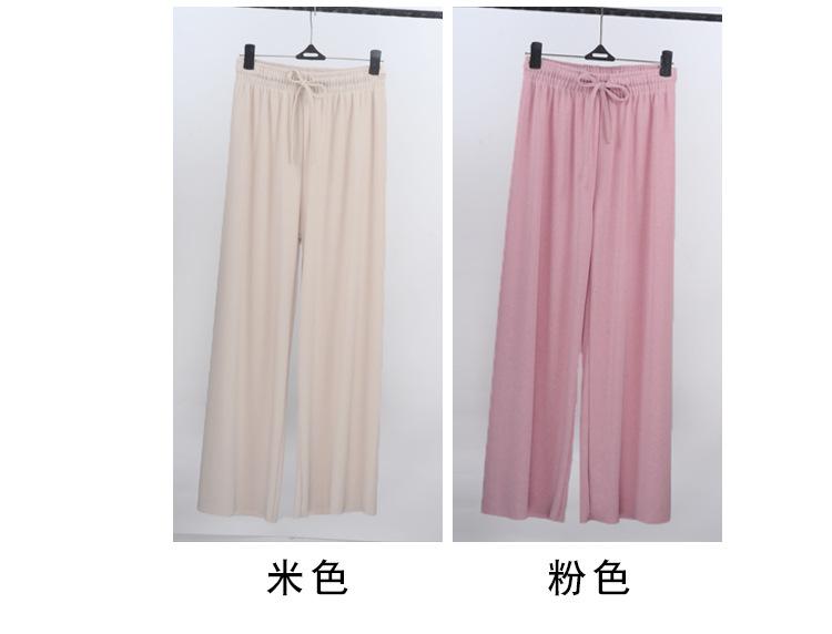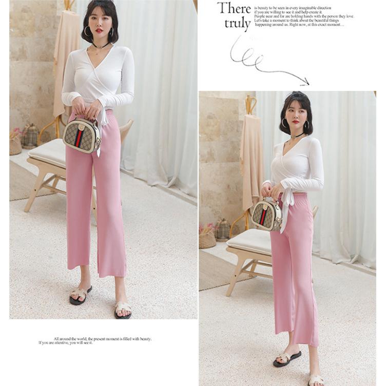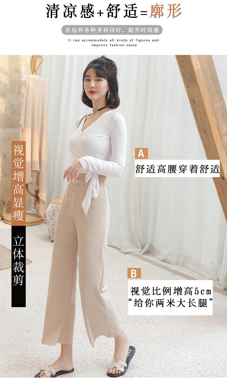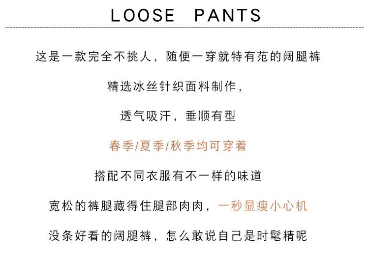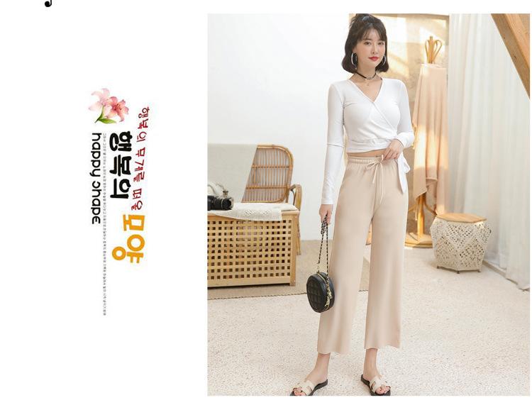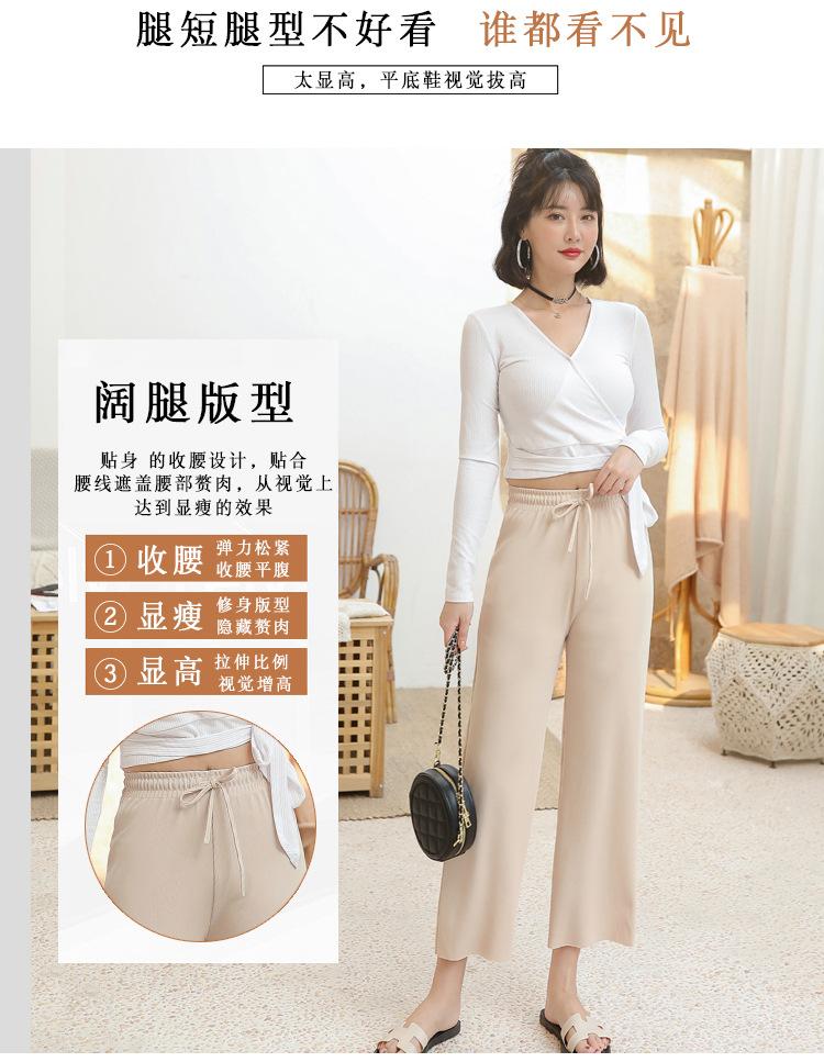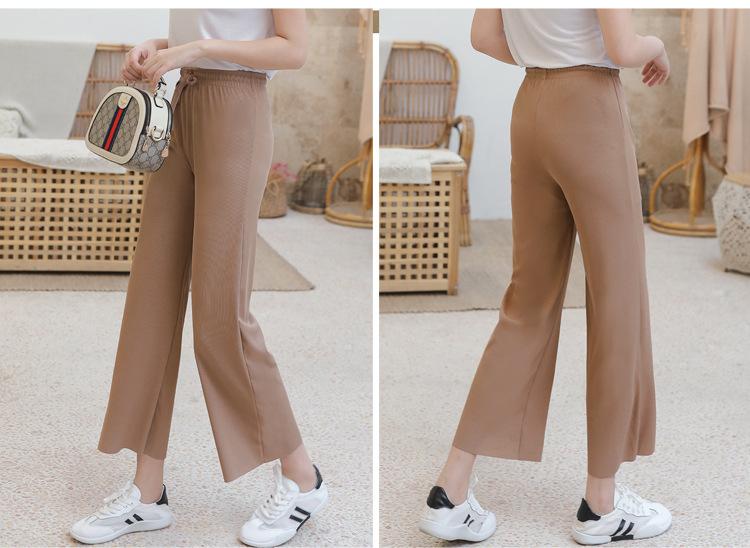 Calças largas de seda gelo primavera e verão, femininas, cintura alta, soltas, finas, casuais, nove calças retas, tamanho uma geração de cabelo