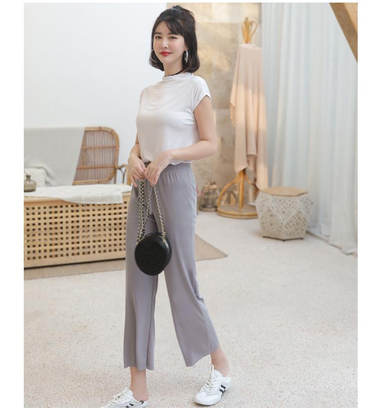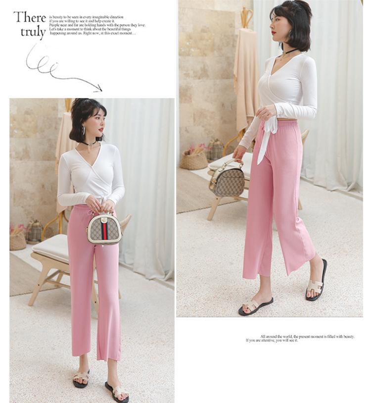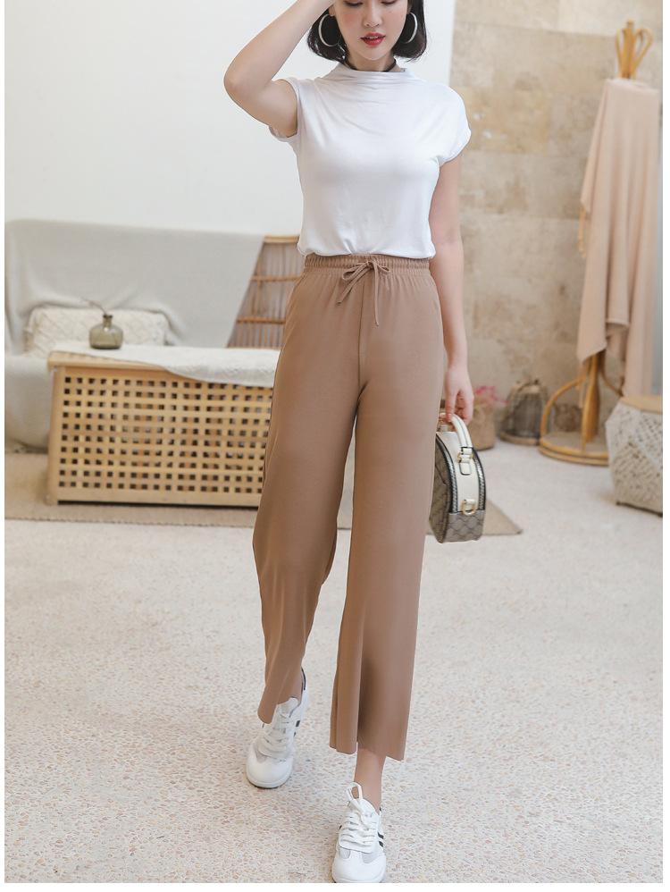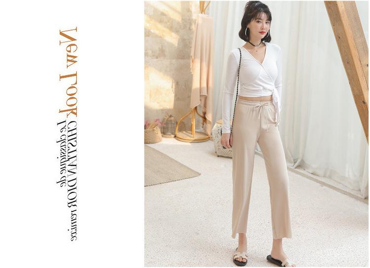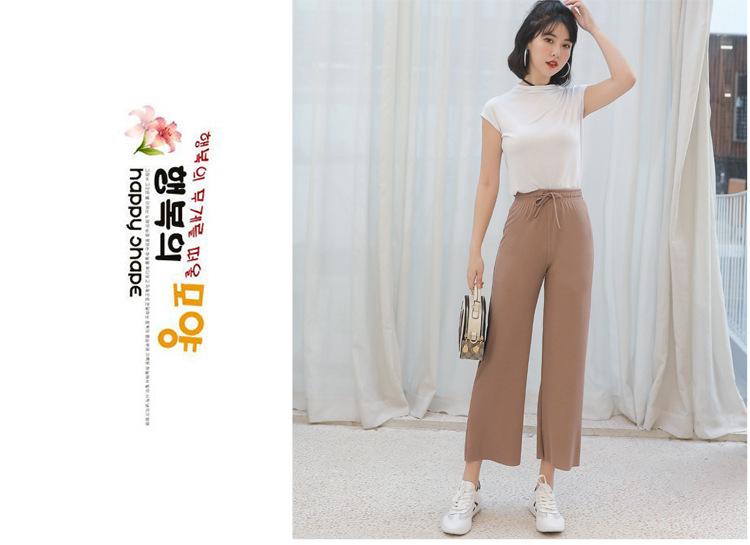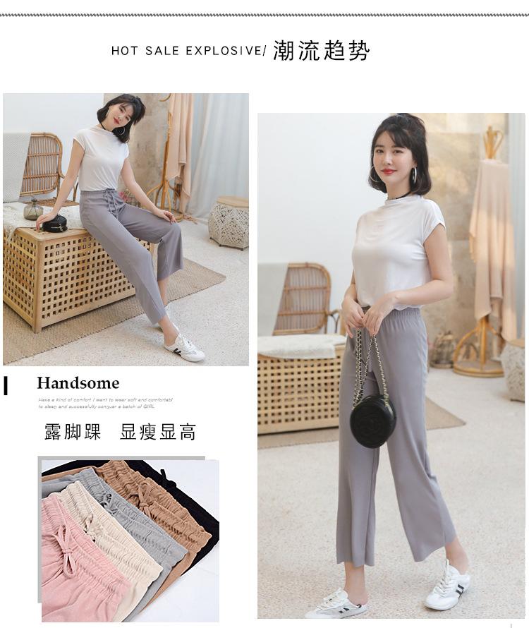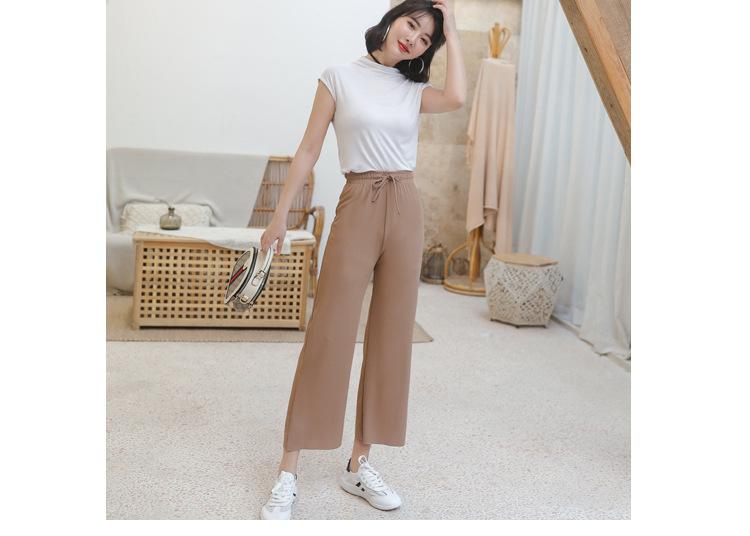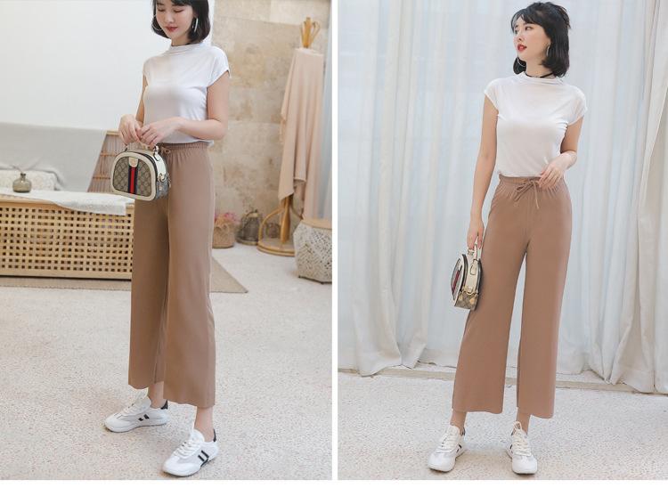 Calças largas de seda gelo primavera e verão, femininas, cintura alta, soltas, finas, casuais, nove calças retas, tamanho uma geração de cabelo