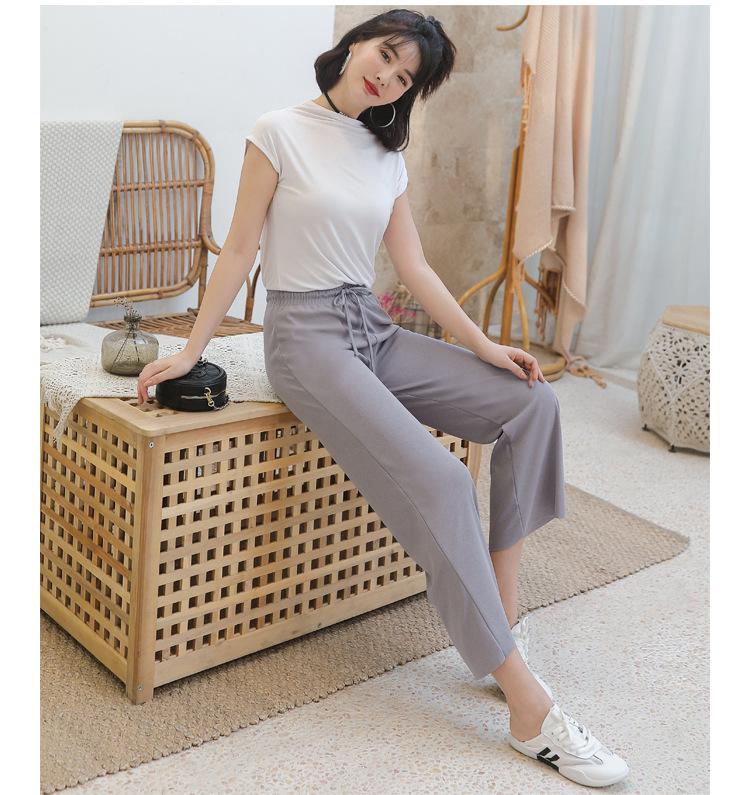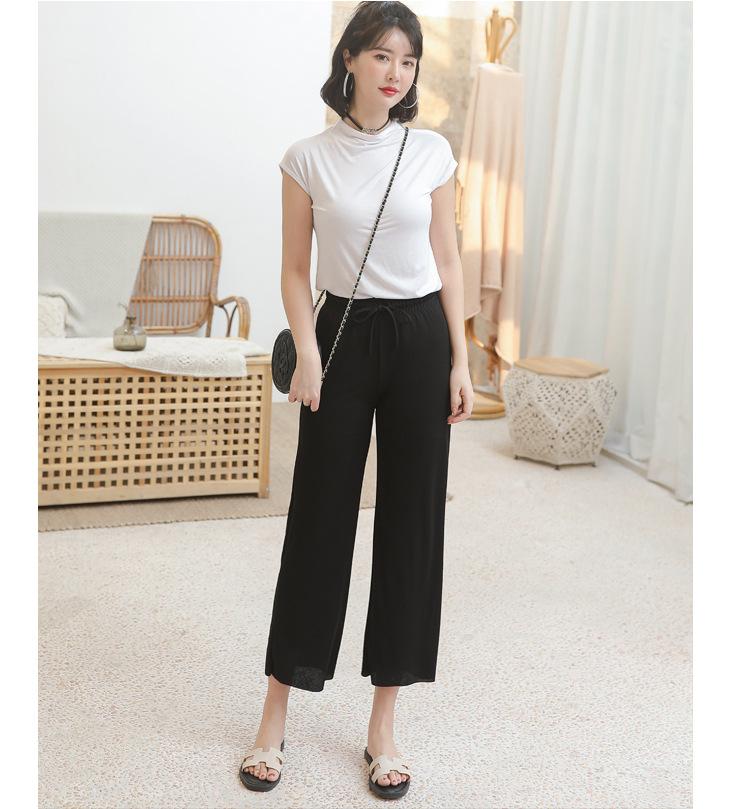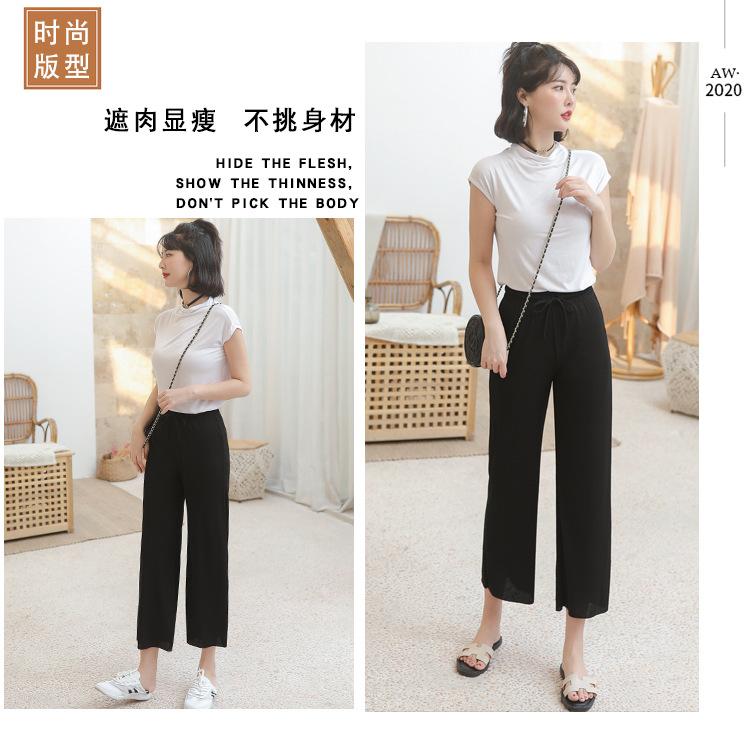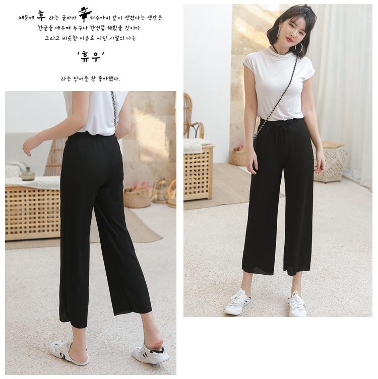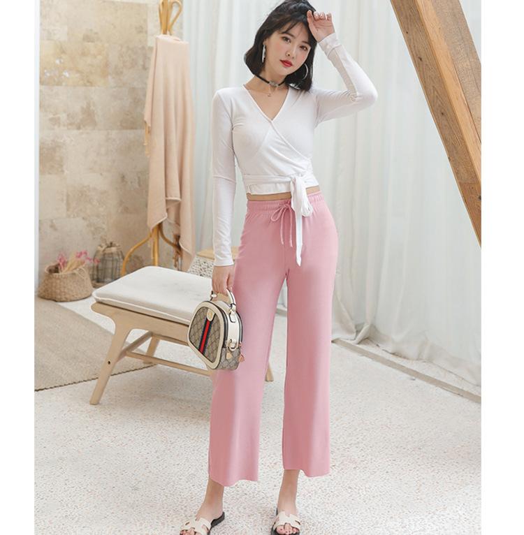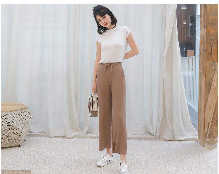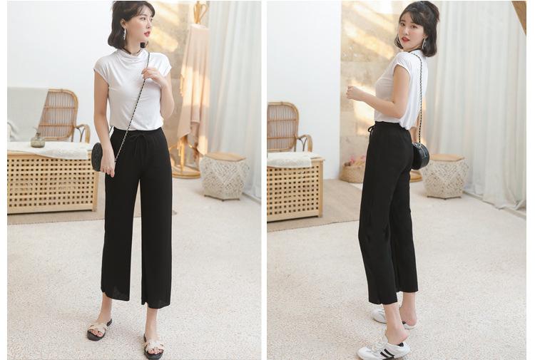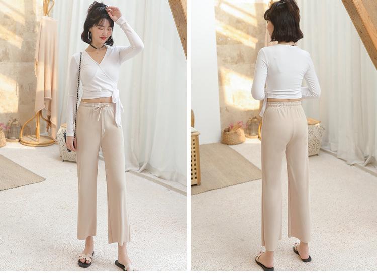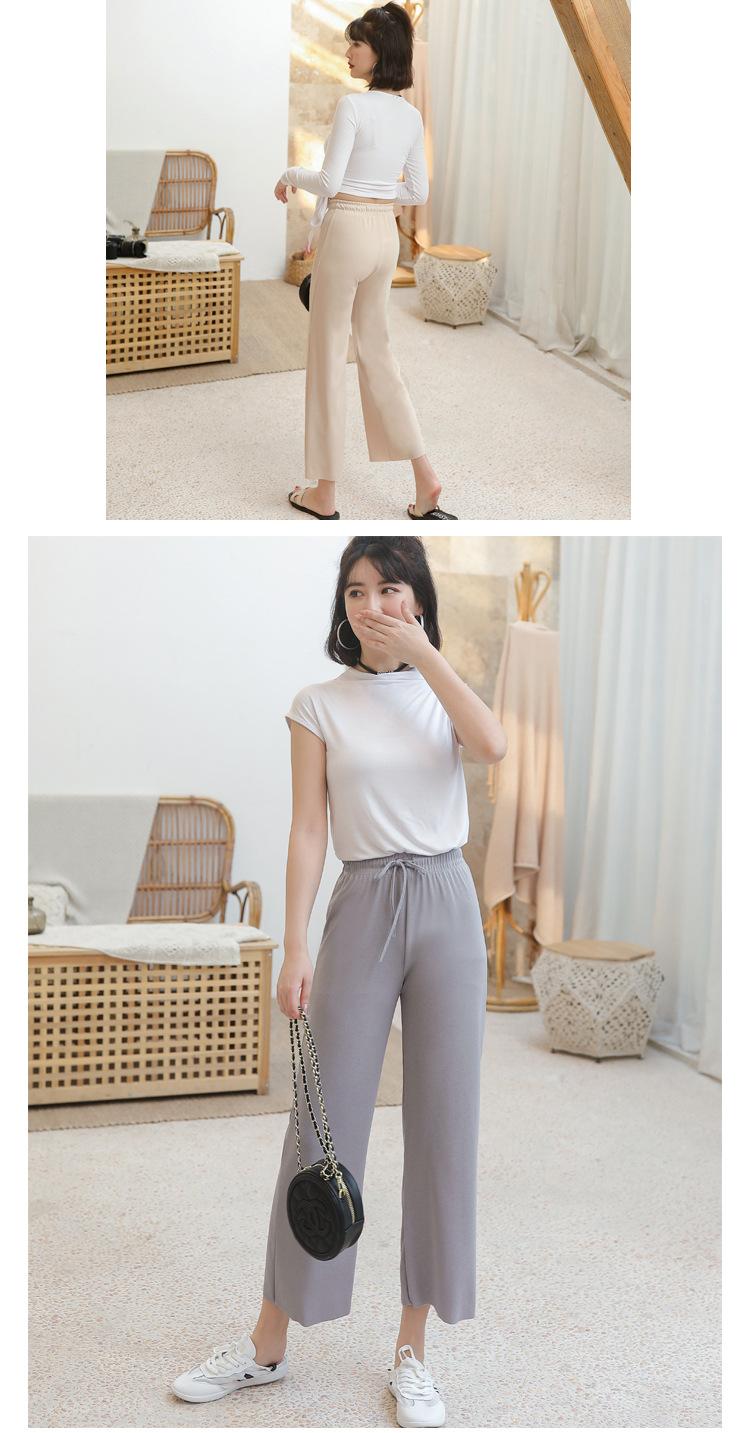 Calças largas de seda gelo primavera e verão, femininas, cintura alta, soltas, finas, casuais, nove calças retas, tamanho uma geração de cabelo