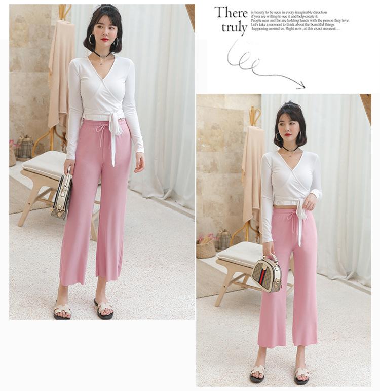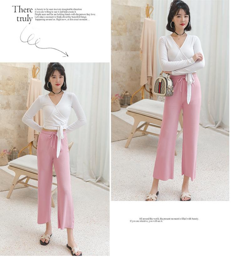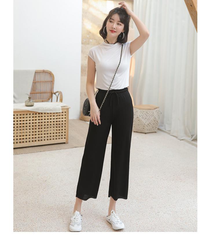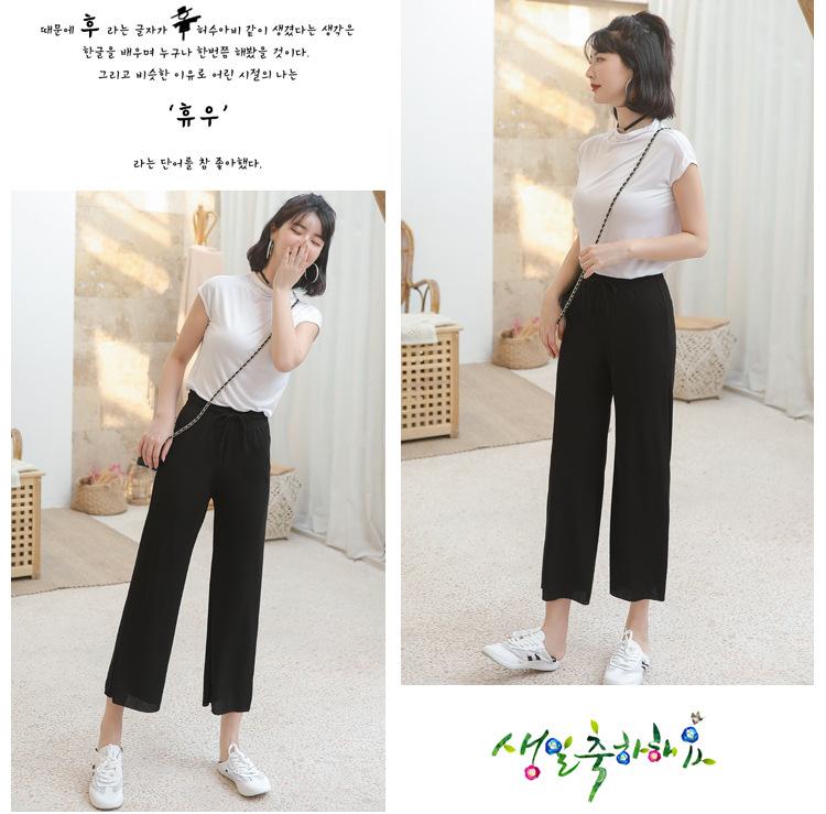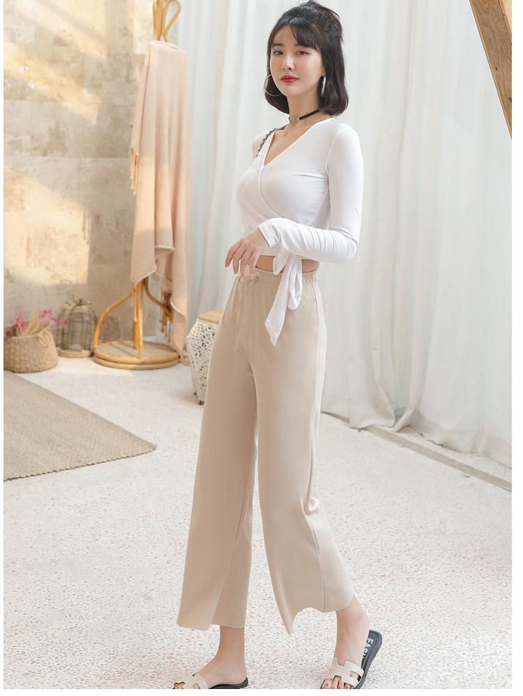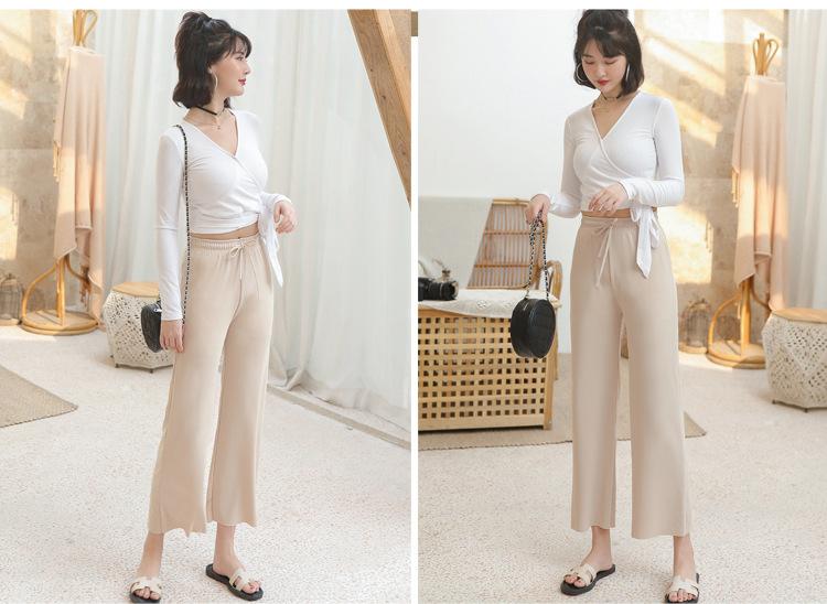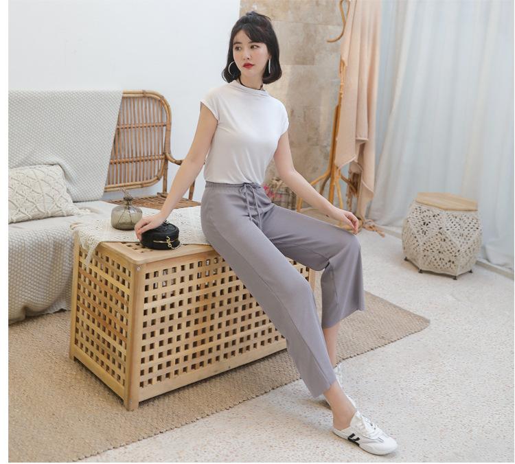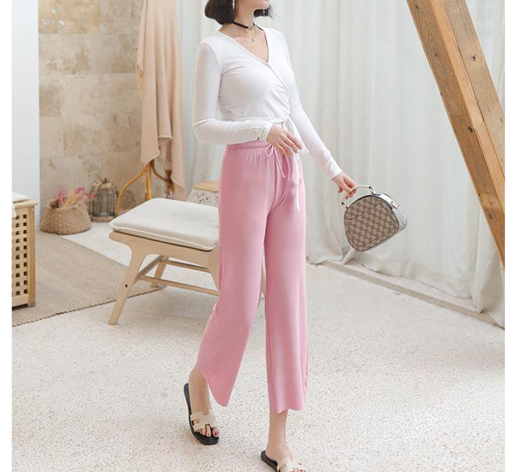 Calças largas de seda gelo primavera e verão, femininas, cintura alta, soltas, finas, casuais, nove calças retas, tamanho uma geração de cabelo