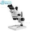 O microscópio estéreo trinocular XTL-7045T adota uma base plana do tipo coluna, a base é equipada com uma prensa e uma placa de trabalho preta e branca de φ95 mm, a altura da coluna é de 240 mm, o diâmetro é de φ32 mm e o tamanho da base é: 200x255x22 mm