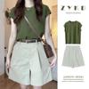 Europeu e Americano Novo 2024 verão de duas peças cor sólida single-breasted manga curta camisa de lapela shorts casual fashion set