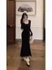 Primavera 2024 Novo Elegante Slim Vestido Longo Moda Flor Elegante Pequeno Vestido de Gola Alta para Mulheres