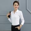 Camisa com decote em V feminina, manga comprida, camisa profissional branca pura, roupa de trabalho, vestido elegante, slim fit, outono, camisa feminina