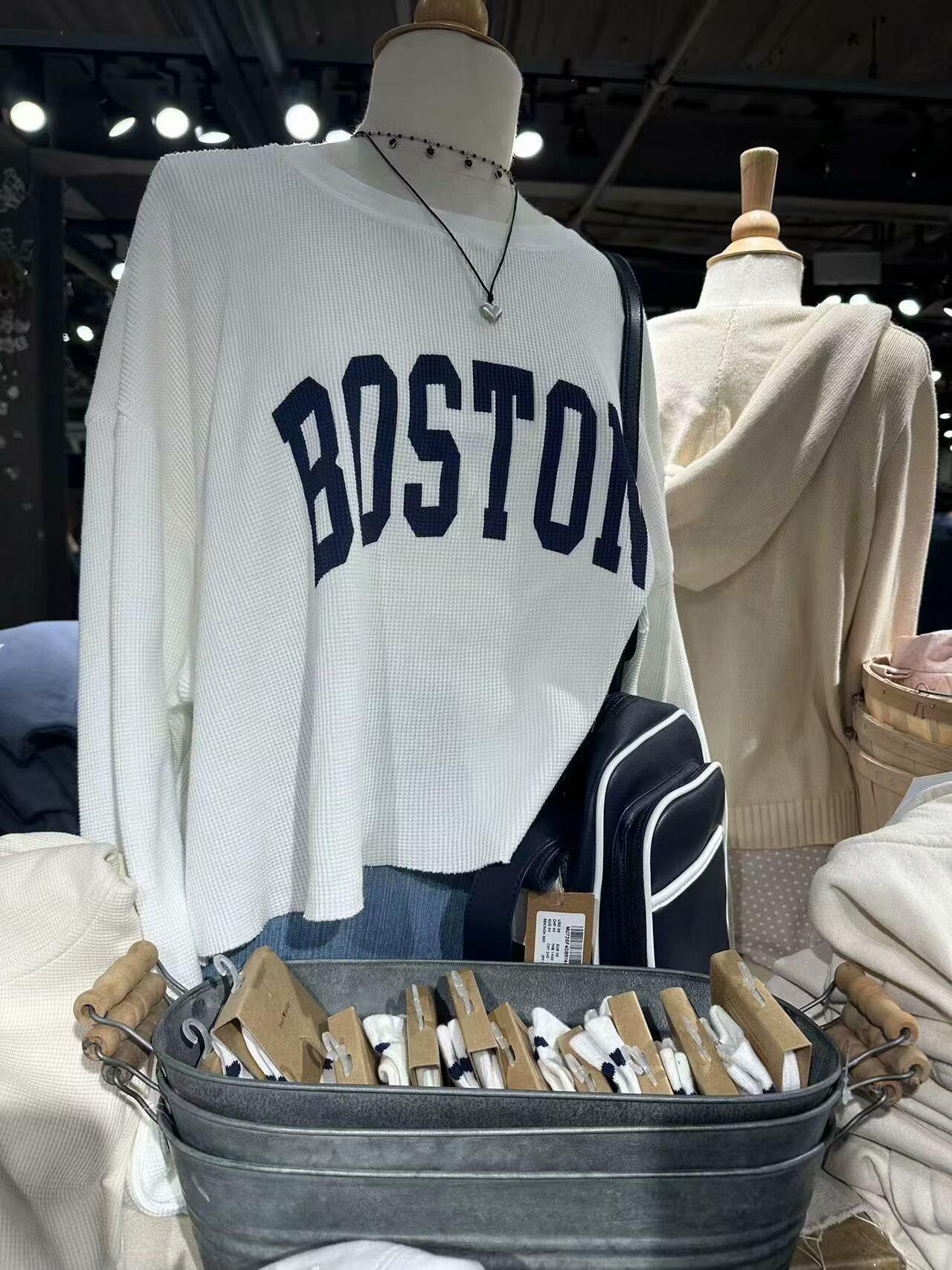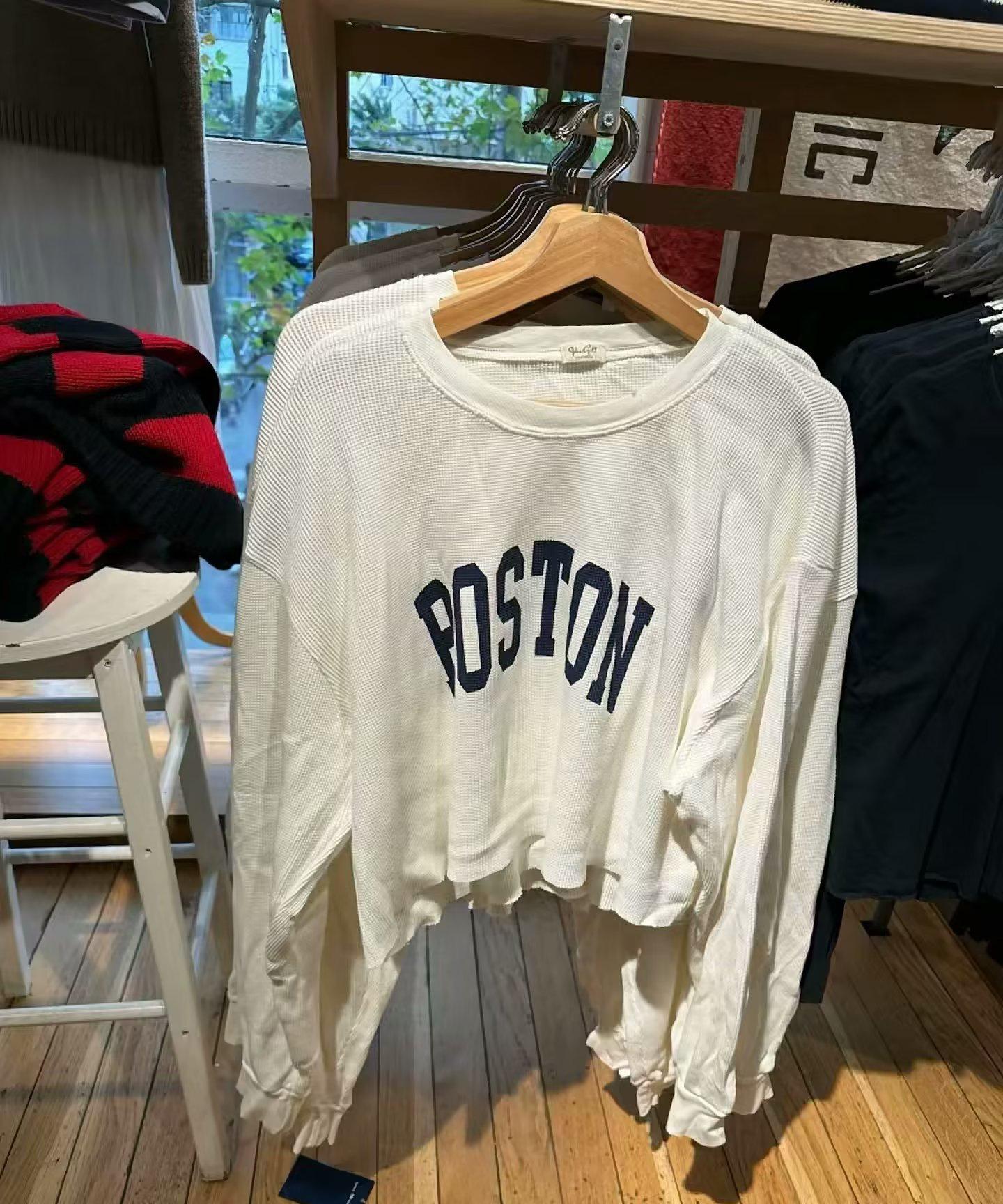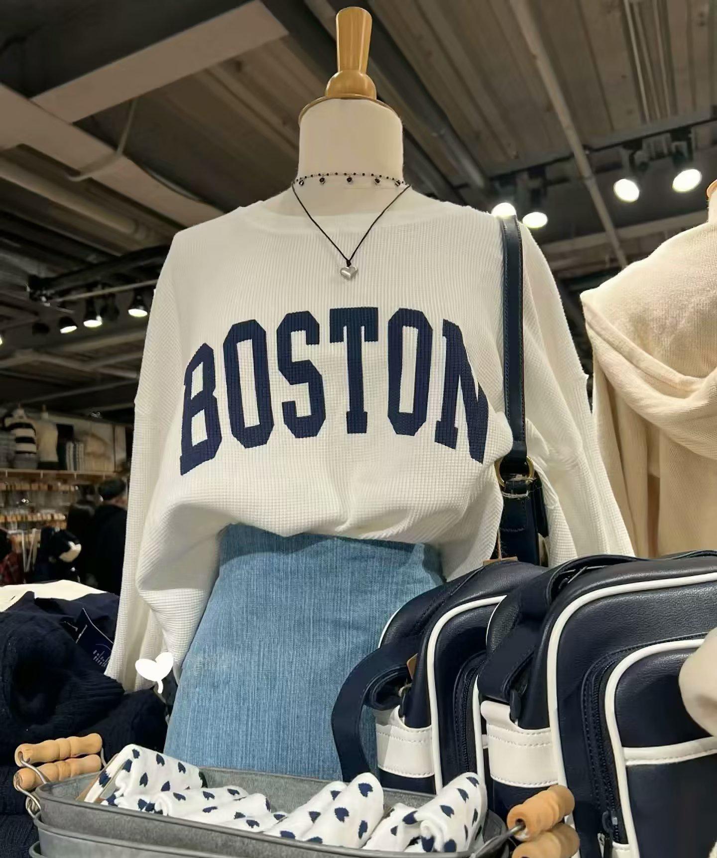 Camiseta feminina de manga comprida solta estilo waffle BM, roupa feminina casual de manga comprida BM para todos os gostos