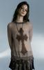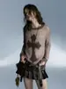Y2K Americano Cross-border Nova Moda de Rua Cruz Impresso Em Torno Do Pescoço De Manga Comprida Malha Solta Suéter Das Mulheres