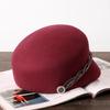 Boina de couro flat top feminina estilo coreano ins versátil chapéu pintor fivela lateral boné pontiagudo chapéu azul marinho outono e inverno