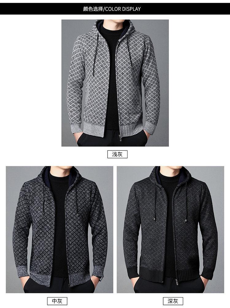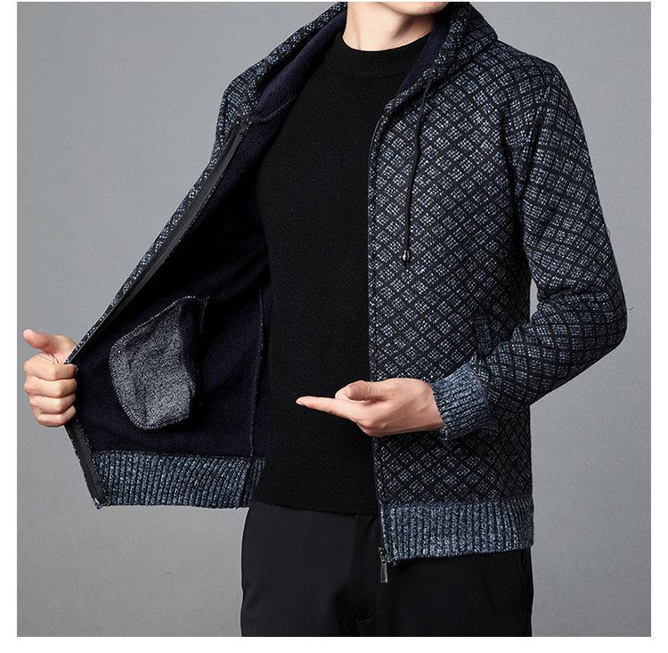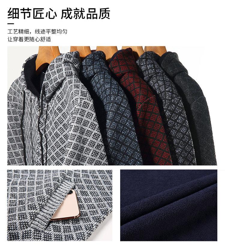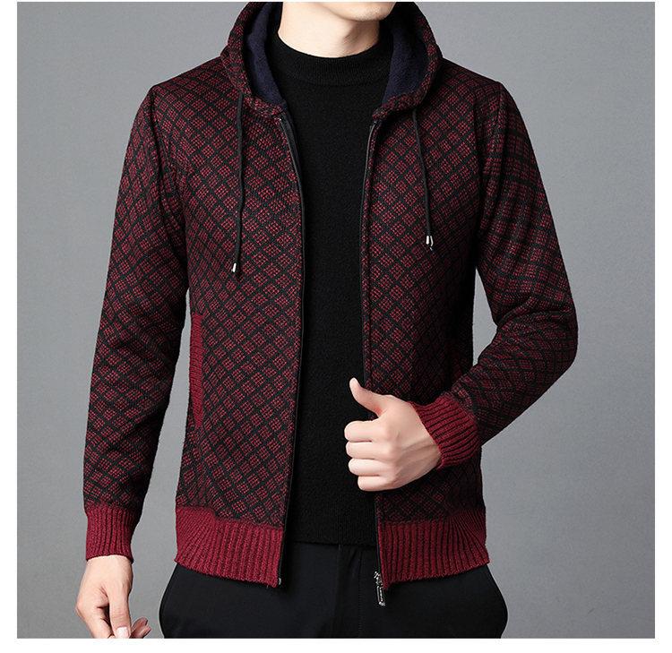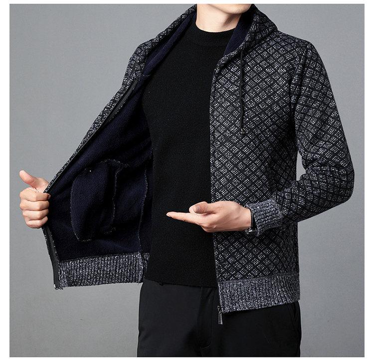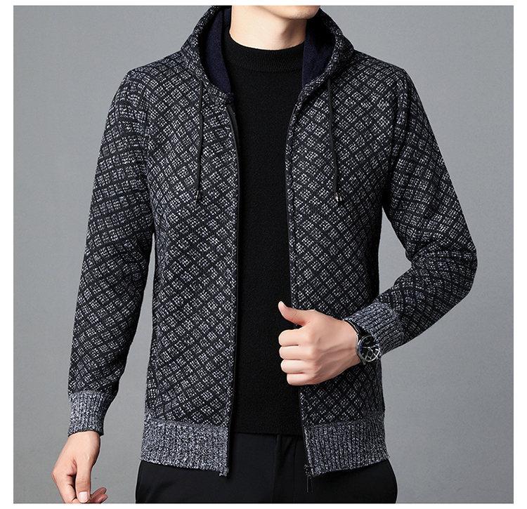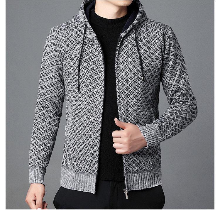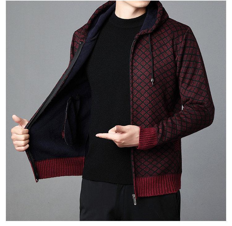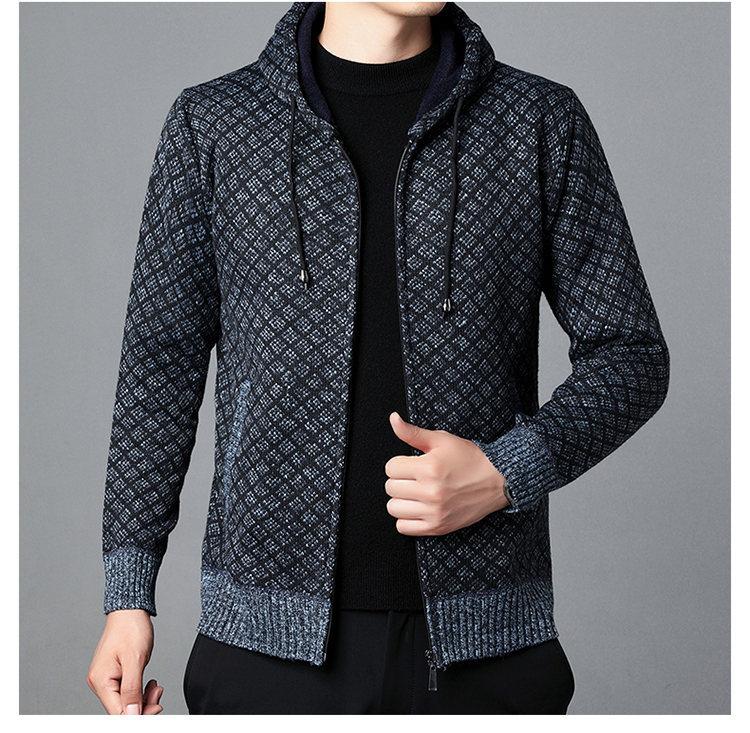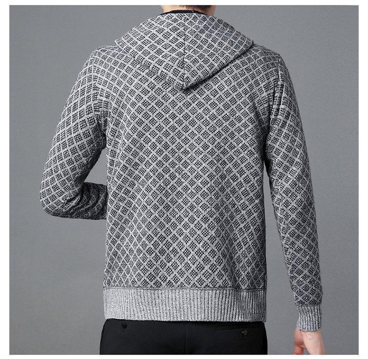 2024 Novo Suéter Masculino Xadrez Jacquard Com Capuz Cardigã Masculino Casaco De Malha Espesso Forrado De Lã Para Homens