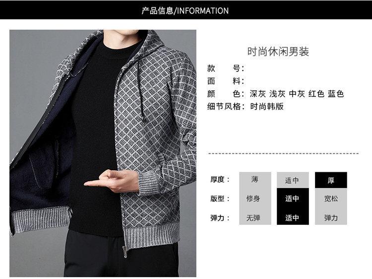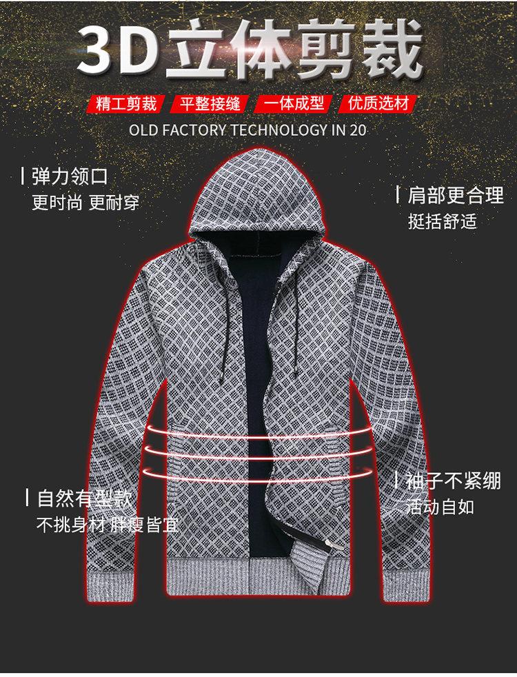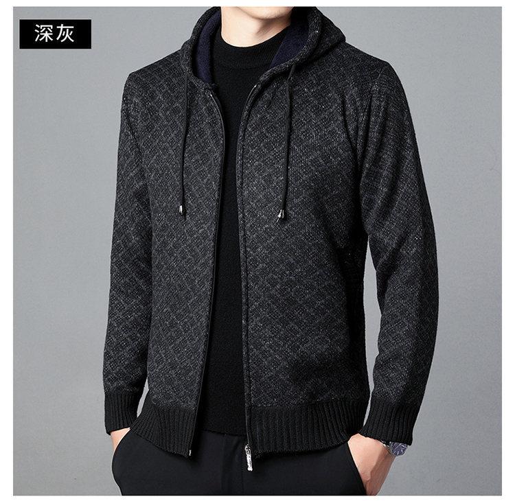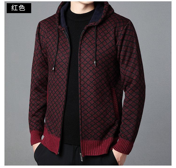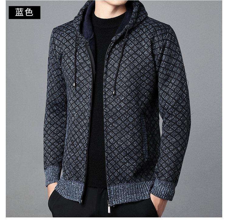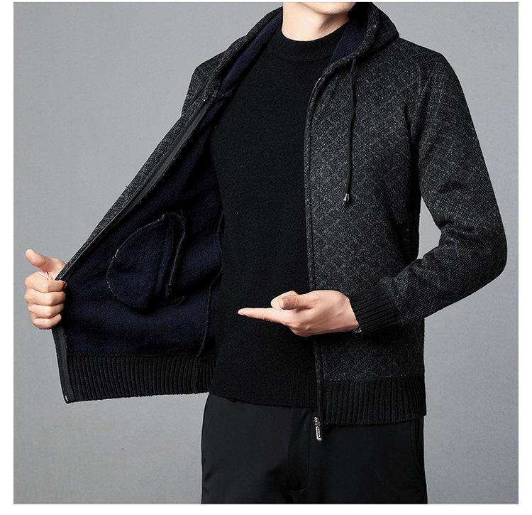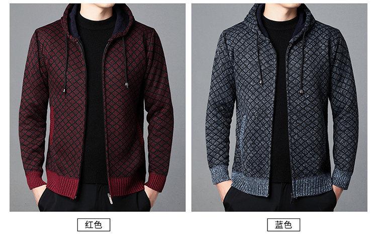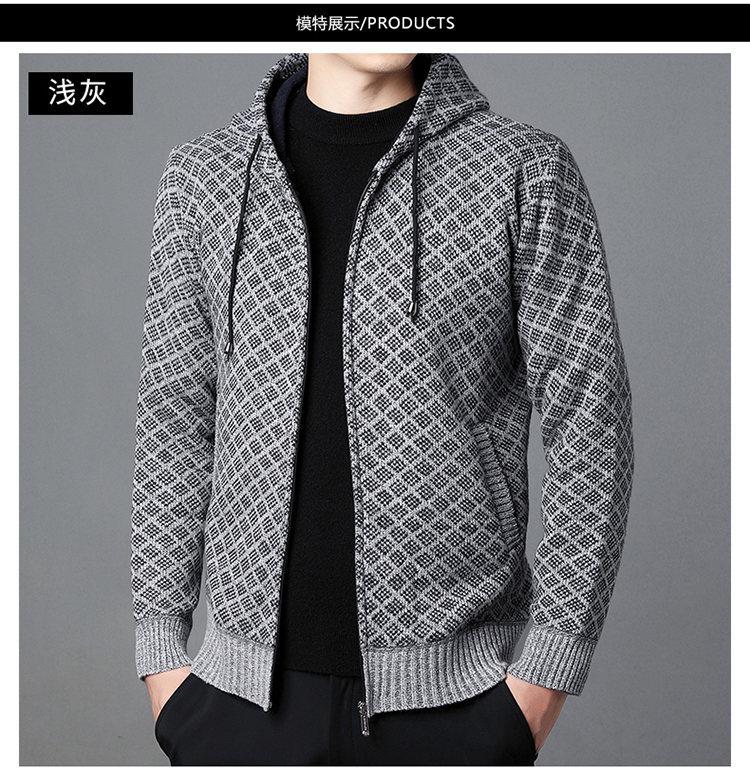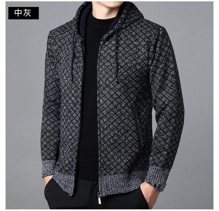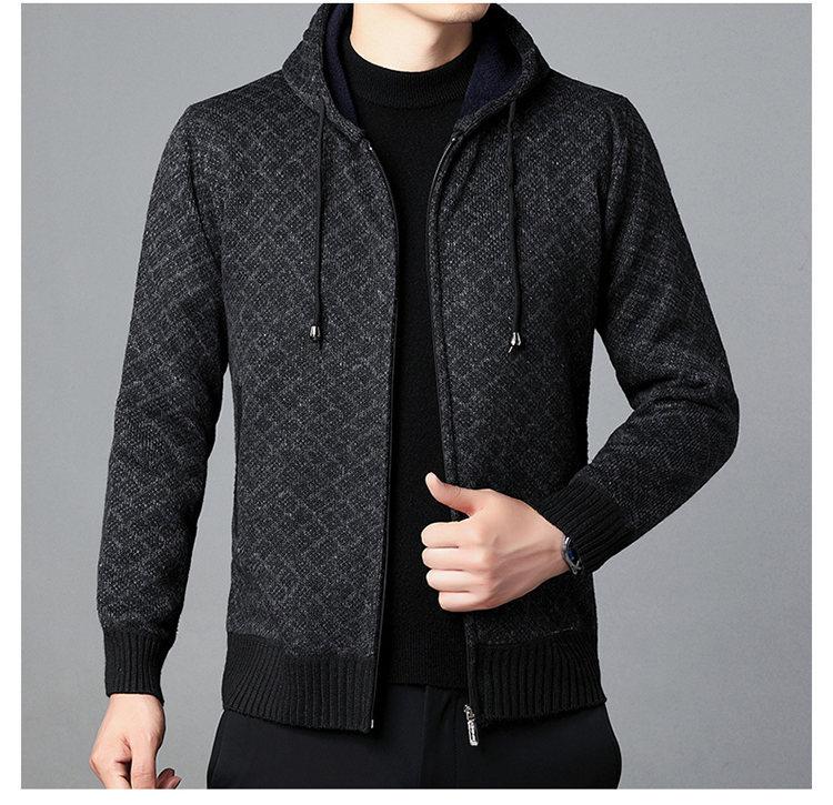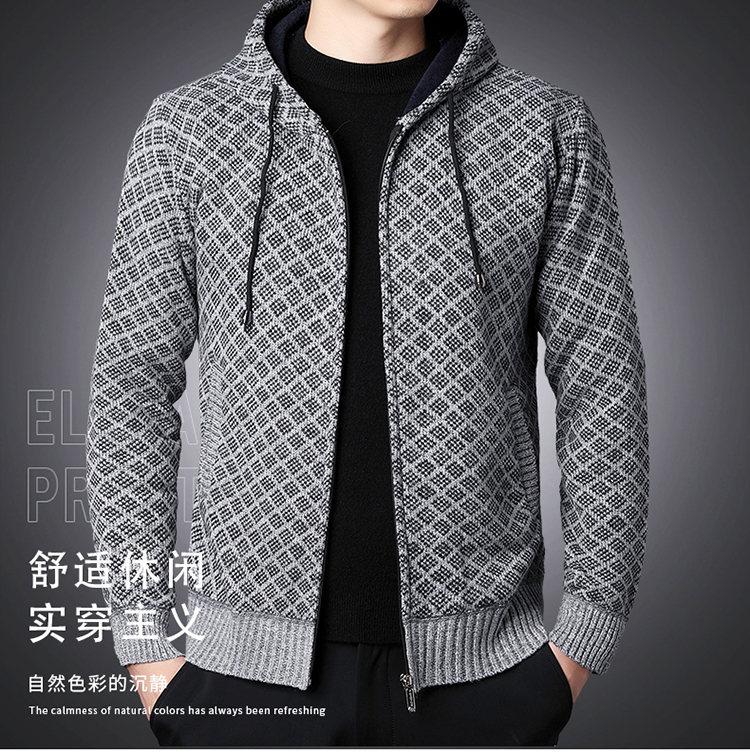 2024 Novo Suéter Masculino Xadrez Jacquard Com Capuz Cardigã Masculino Casaco De Malha Espesso Forrado De Lã Para Homens