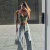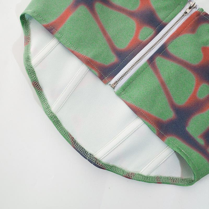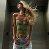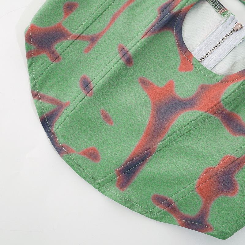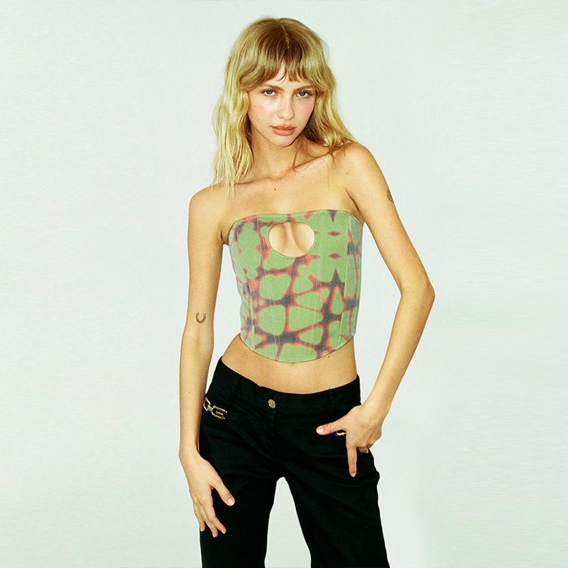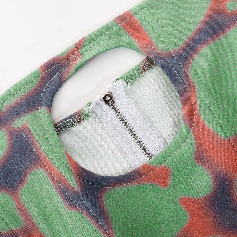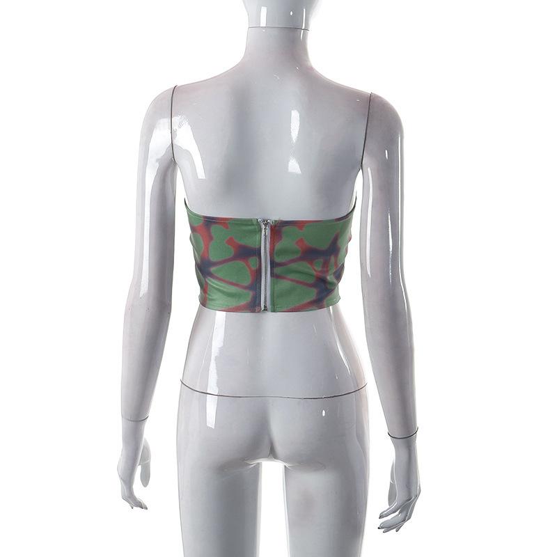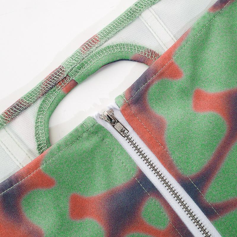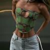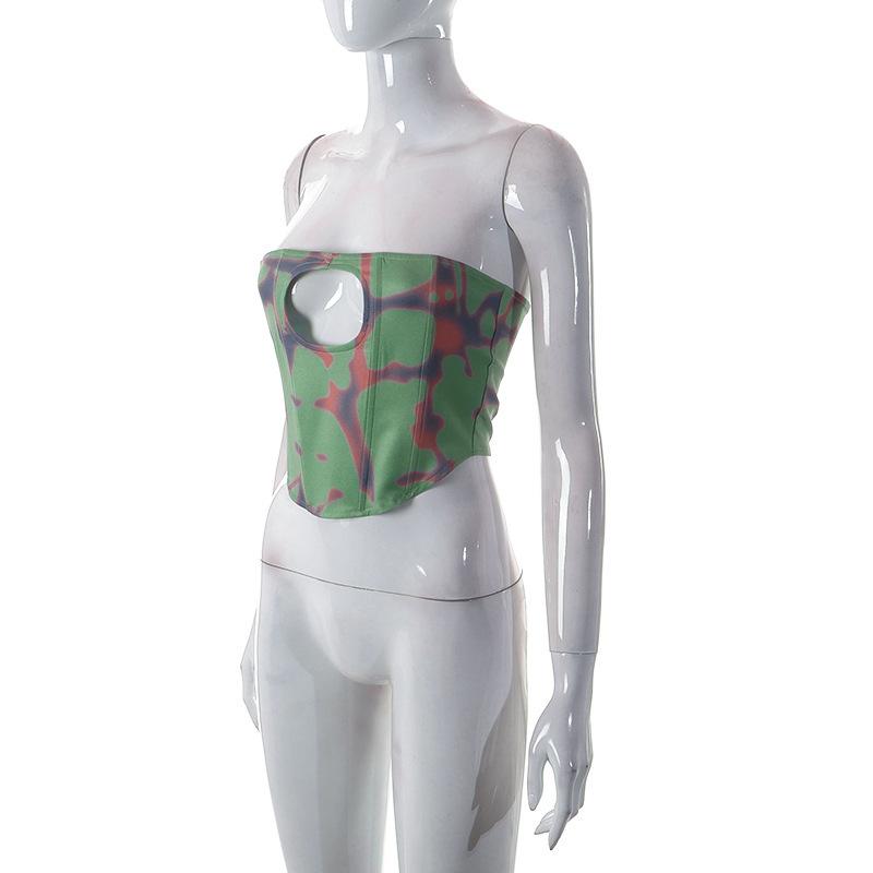 Vento europeu e americano 2023 primavera nova sexy oco peito baixo magro moda impressão cintura envolta feminina