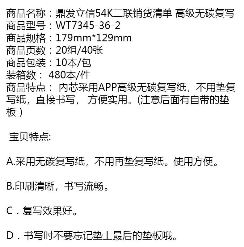 Dingfa 36K lista de vendas bidirecionais cópia avançada sem carbono documentos avançados sem carbono vendas diretas