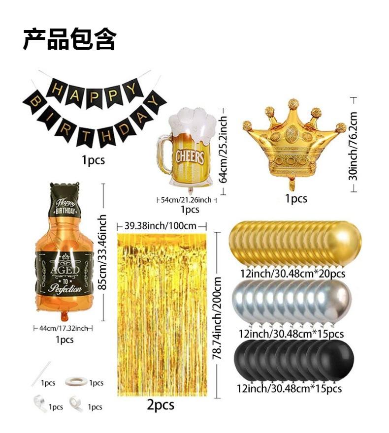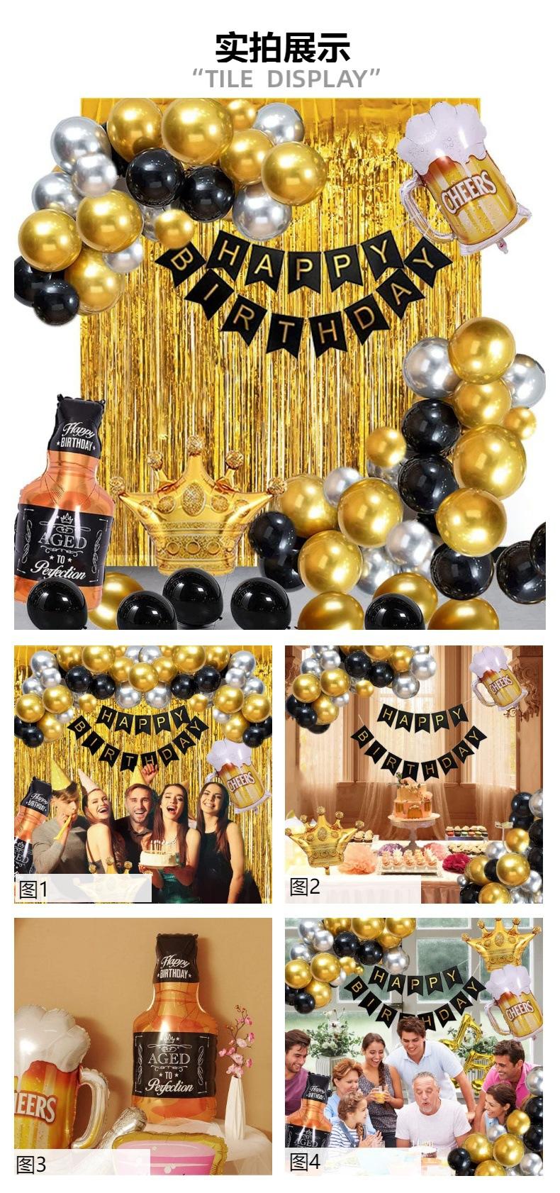 Decoração de balão de festa de aniversário de prata ouro preto transfronteiriço decoração de layout de cena de jantar de festa de aniversário para adultos