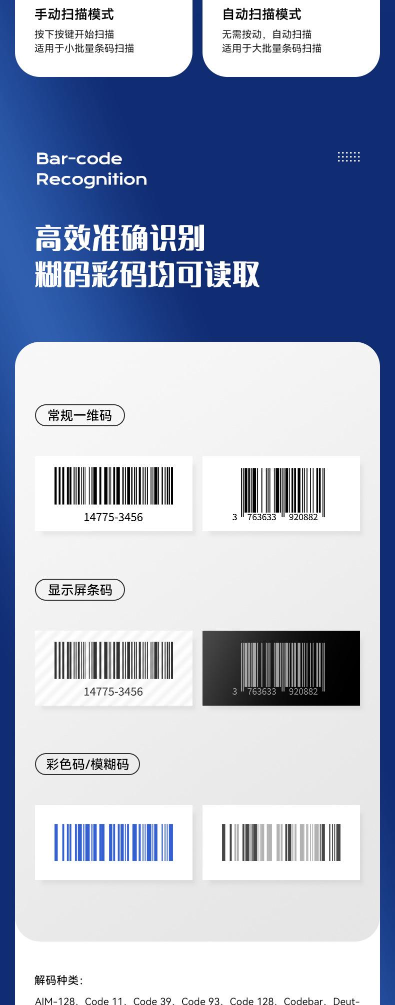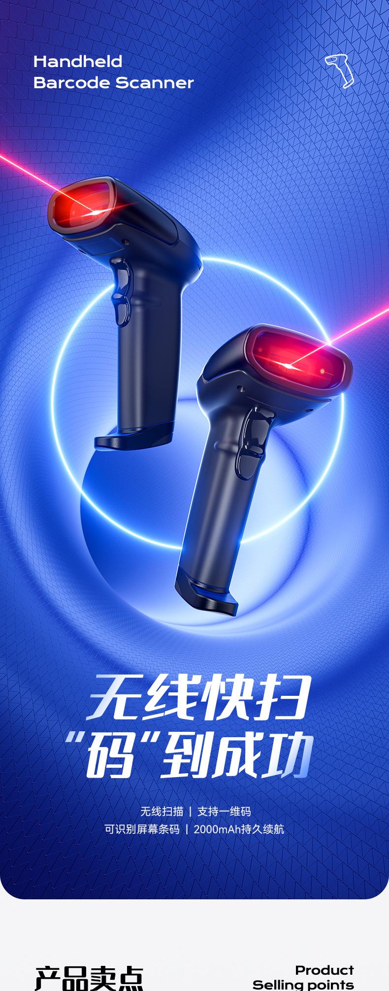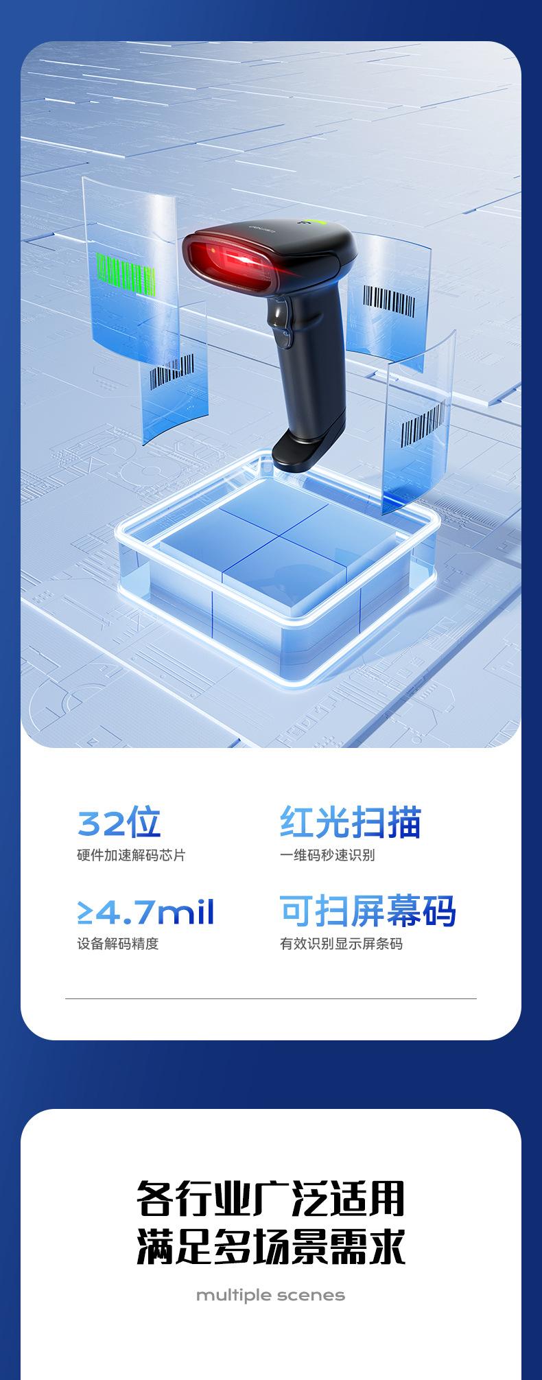 Deli AA102 Scanner Sem Fio Arma de Digitalização Código de Barras Scanner de Código de Tela de Código de Tela Logística Expressa Produto