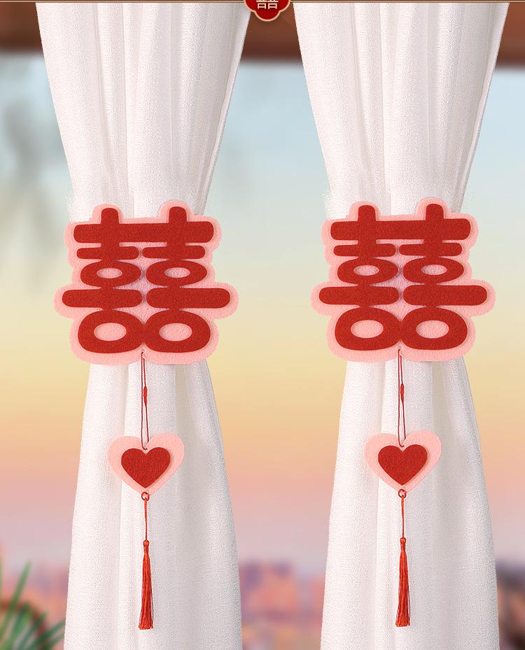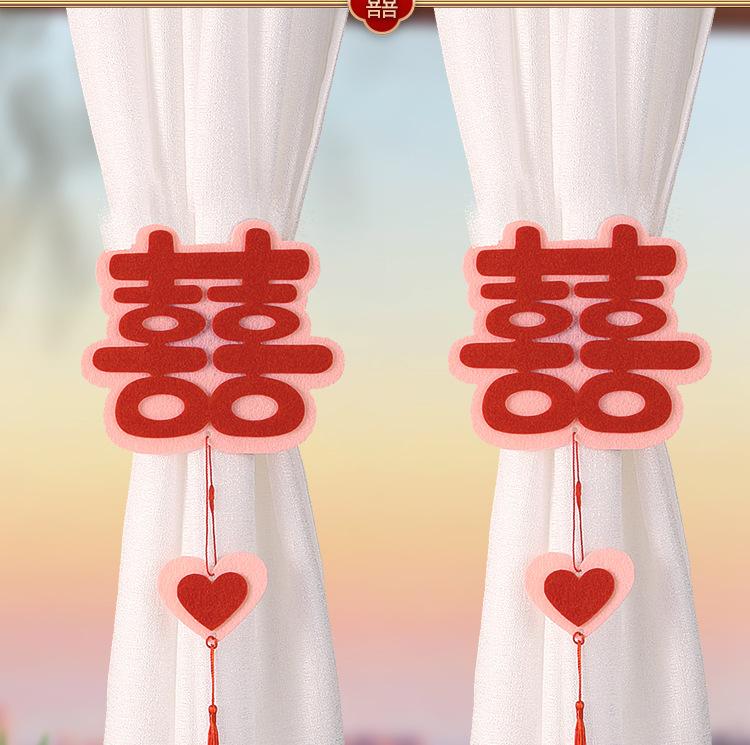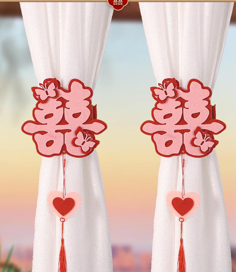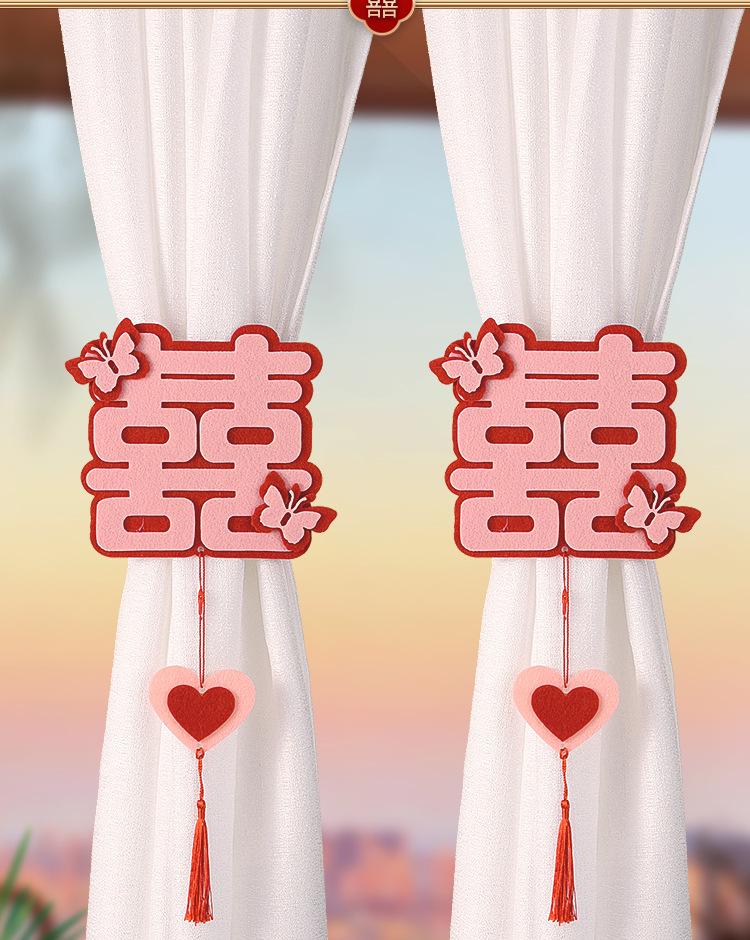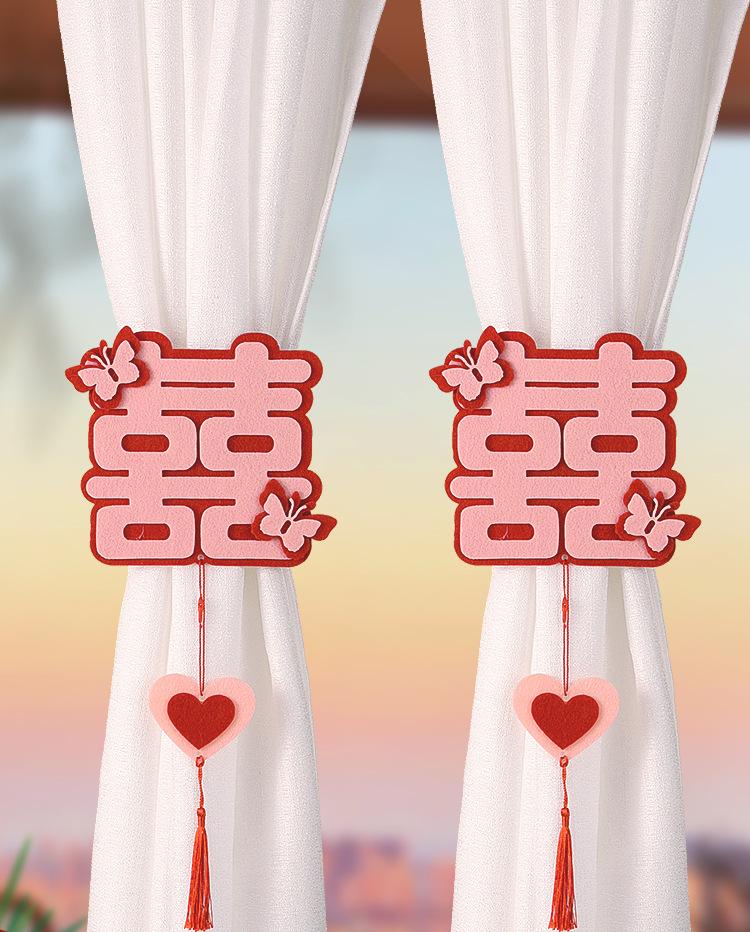 A pair of red + pink cartoon wedding curtain bow straps
