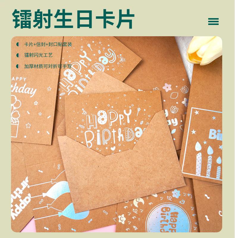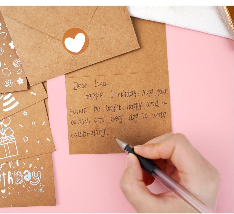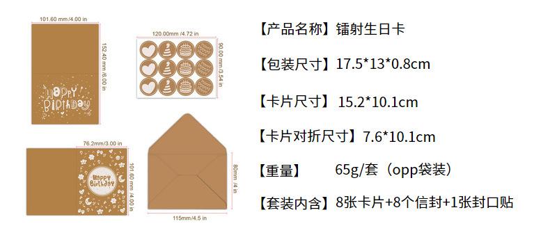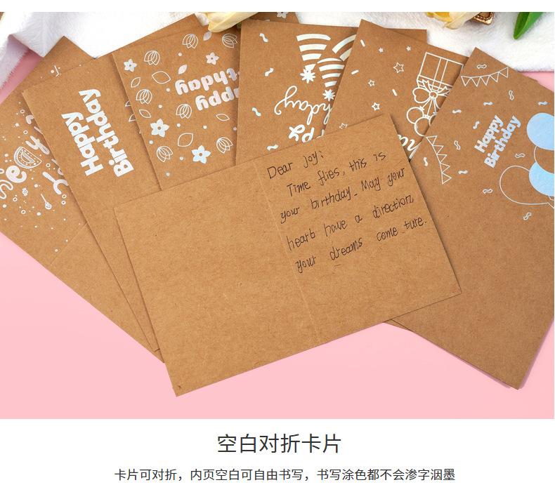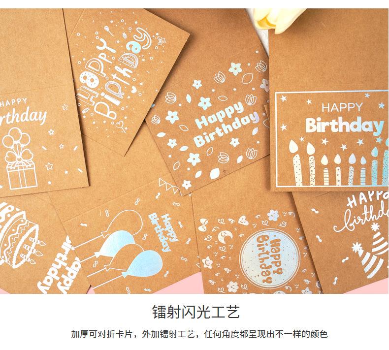 Cartão de Feliz Aniversário Transfronteiriço Papel Kraft Laser DIY com Envelope Dobrado Manuscrito em Branco Bênção Cartão de Aniversário