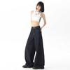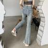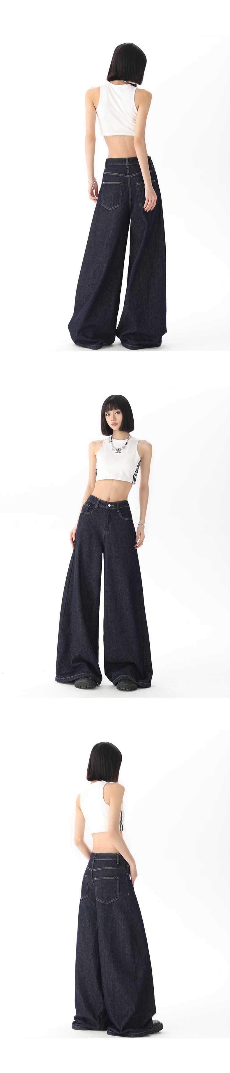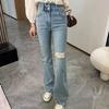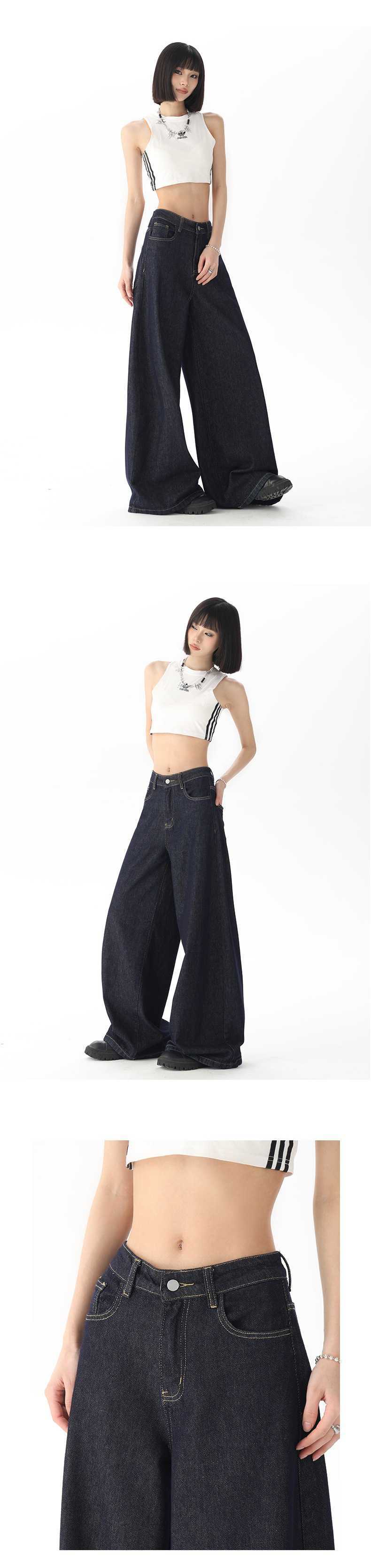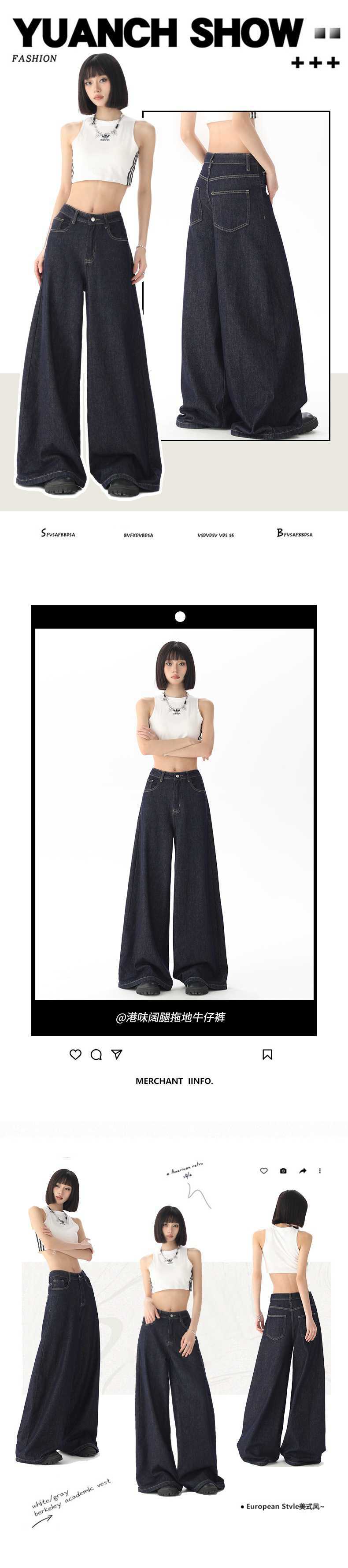Jeans Vintage de Perna Larga para Mulheres Soltos Slim-fit Cintura Alta Calças Mergulhadas Calças Longas