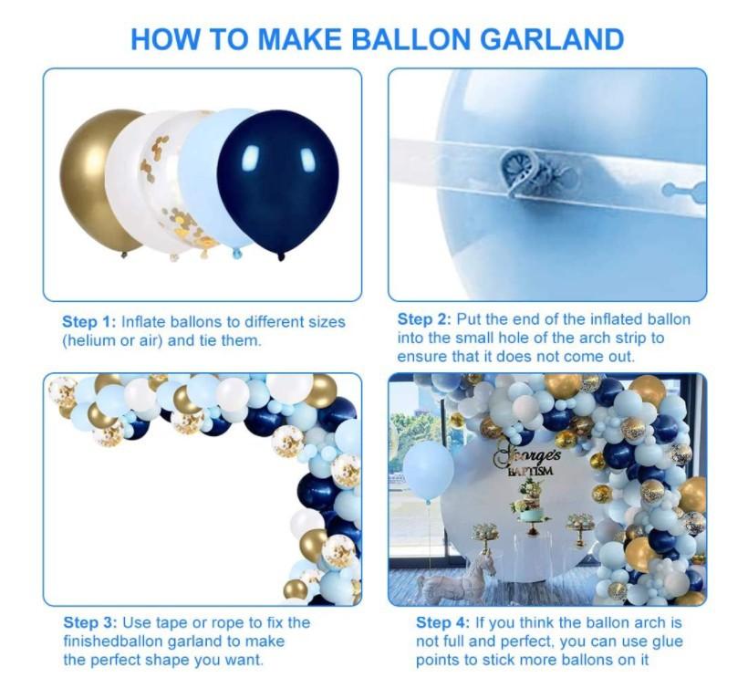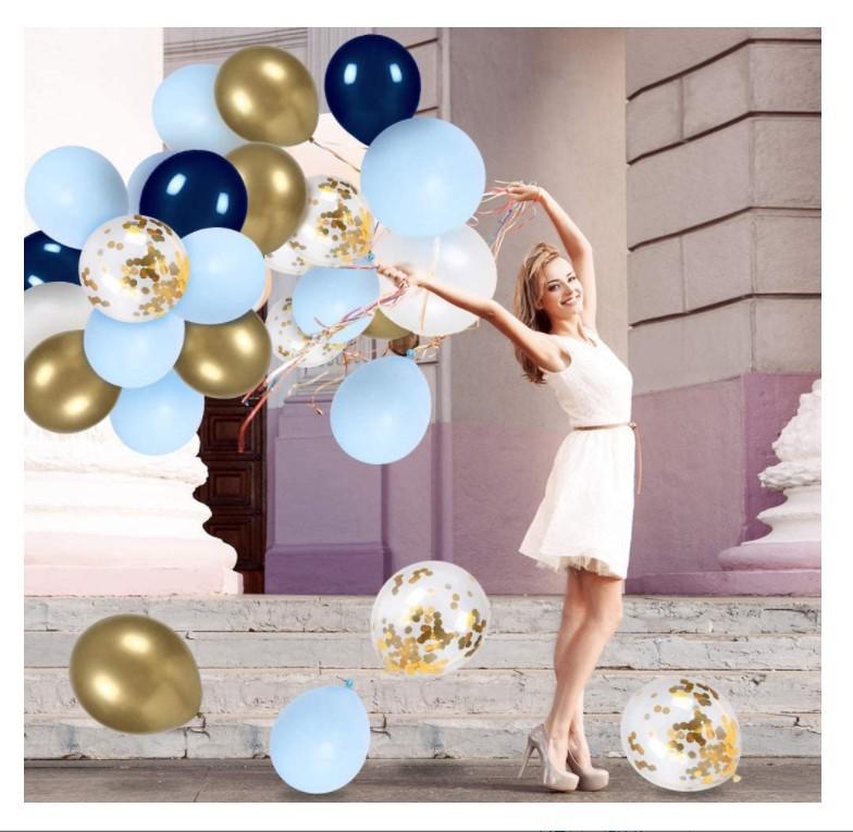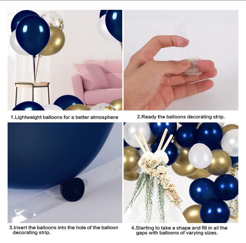 【Kit de Balões DIY】: Esses kits de guirlanda de balões azul-marinho incluem 45 balões azul-marinho, 45 balões brancos, 15 balões de confete dourados e 15 balões metálicos dourados. Um rolo de fita de 16 pés e um ponto de cola, um pacote de balões DIY para qualquer decoração de festa.