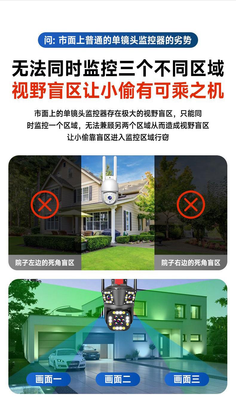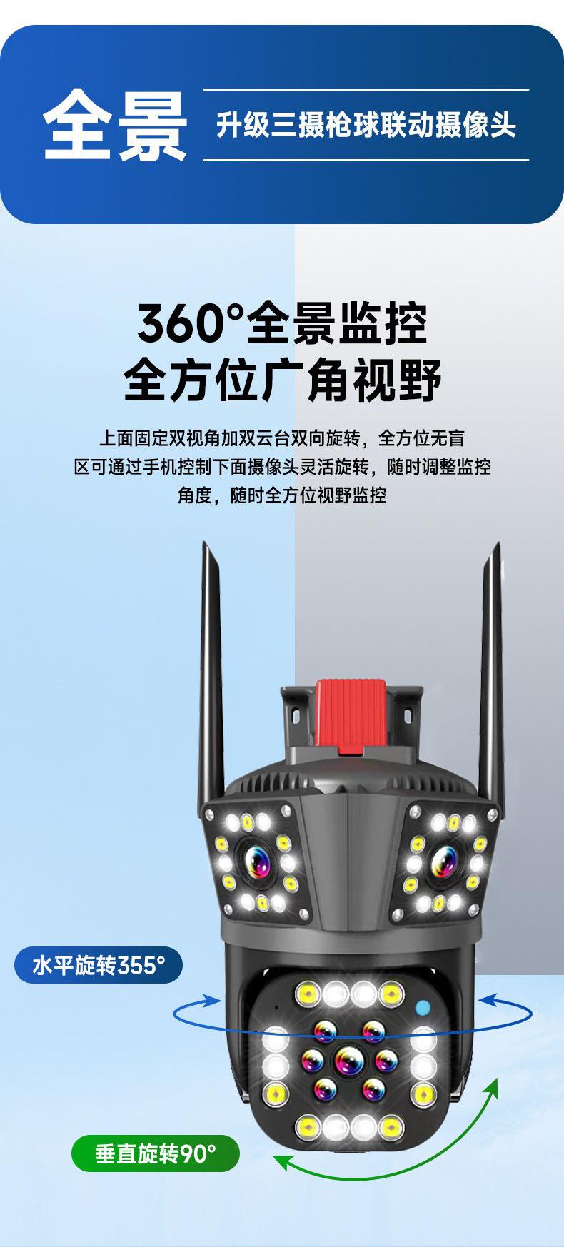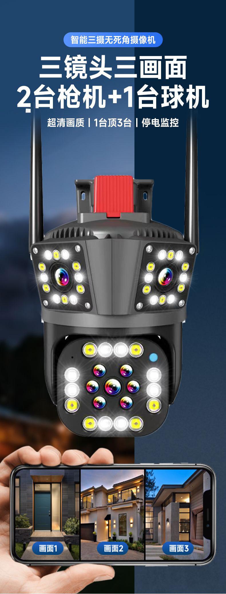 Nova câmera de vigilância de três olhos 360 celular remoto home gun ball linkage sem fio wifi câmera externa