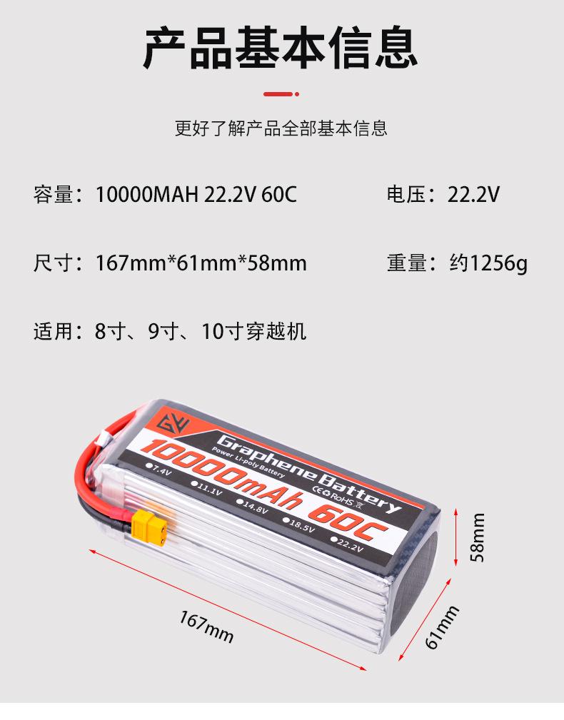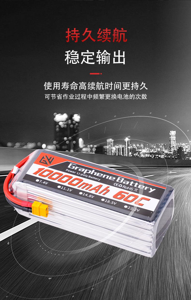 Bateria GW 22,2 V 6S 10000 mAh 60C 10 "Crossing Machine FPV UAV Veículo de alta taxa e eletricidade do navio