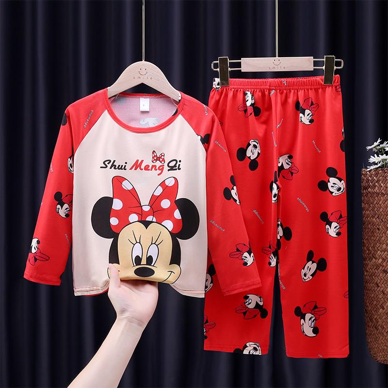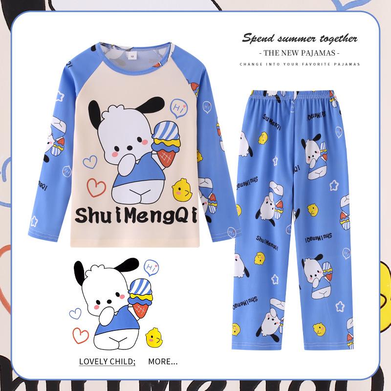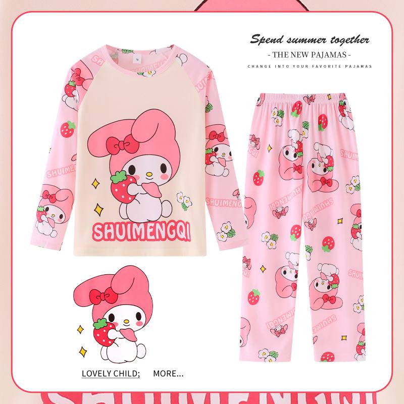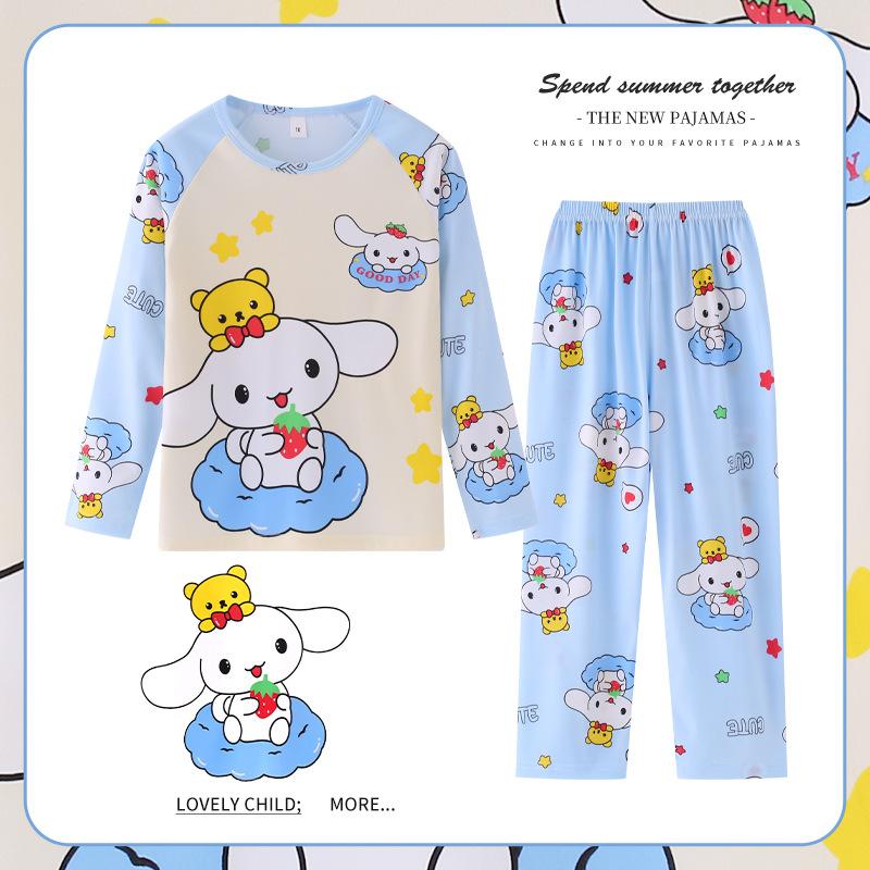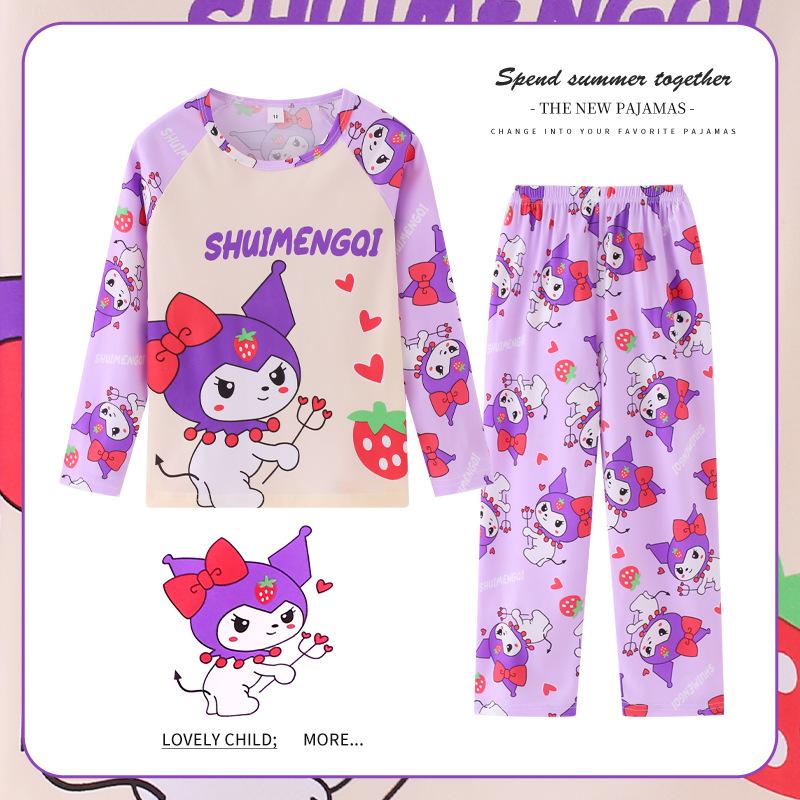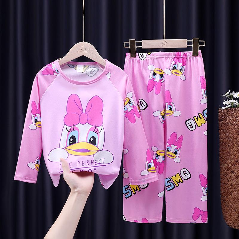 Pijama para meninas Verão Manga comprida Calças Finas 2024 Novas Meninas Infantis Primavera Médio e Grande Terno Infantil Roupas para Casa