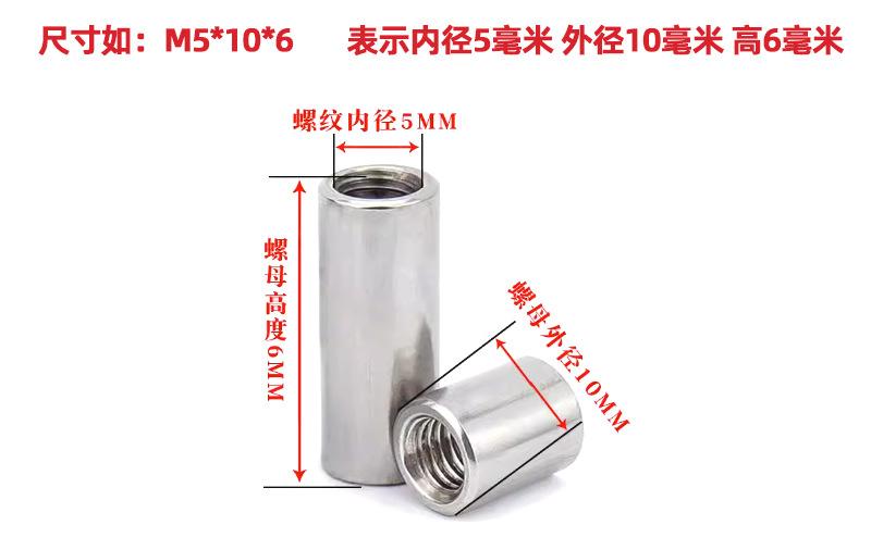 Porca redonda de aço inoxidável 304, porca de extensão de junta de parafuso, porca de almofada de aumento, poste M3M4M5M6M8-M12