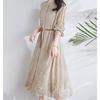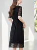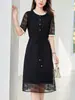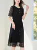 [Piscadela] Vestido Feminino de Seda Verde Four Seasons Seda de Amora Bordado Cintura Solta Saia de Comprimento Médio 82496796