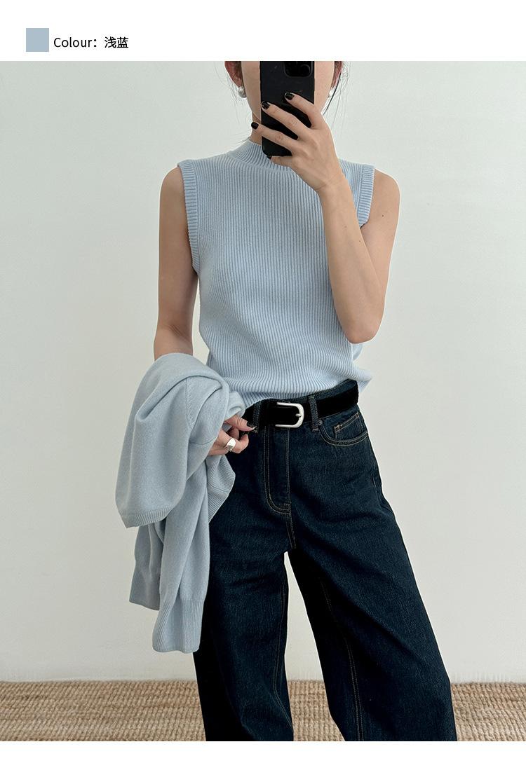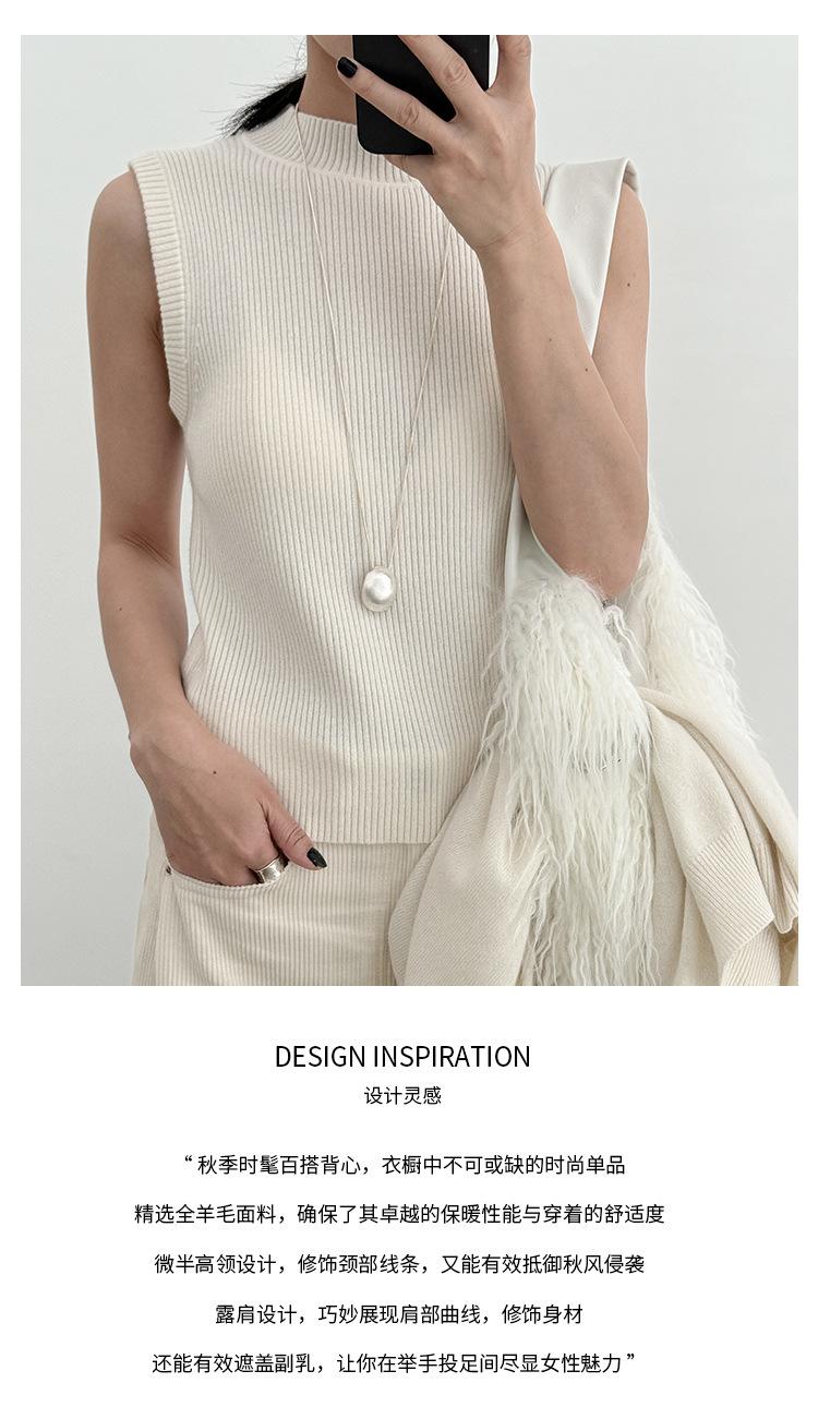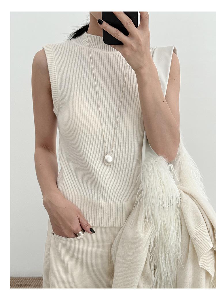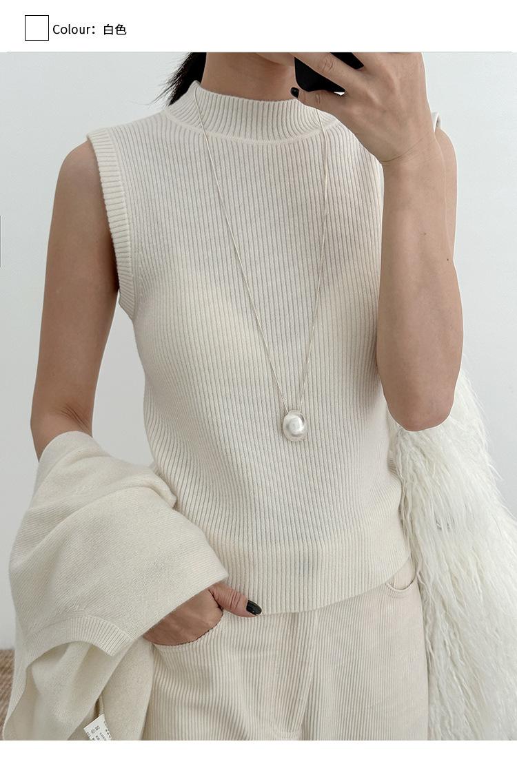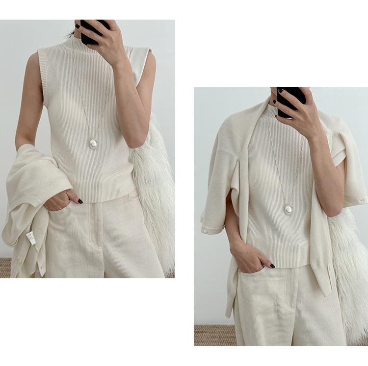 Estilo Desejo Limpo Puro Colete de Lã Feminino 2025 Treze Linhas Primavera Novo Suéter de Lã Listrado Vertical 52573